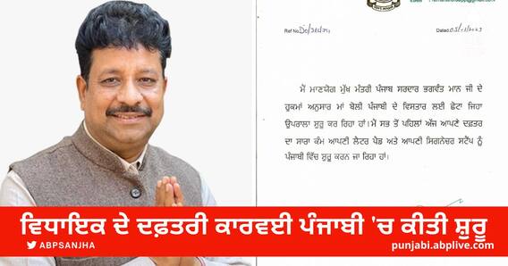 Aam Aadmi Party: ਜਲੰਧਰ ਕੇਂਦਰੀ ਦੇ ਵਿਧਾਇਕ ਰਮਨ ਅਰੋੜਾ ਨੇ ਮੁੱਖ ਮੰਤਰੀ ਭਗਵੰਤ ਸਿੰਘ ਮਾਨ ਦੇ ਨਿਰਦੇਸ਼ਾਂ 'ਤੇ ਅੱਜ ਤੋਂ ਆਪਣੇ ਦਫ਼ਤਰ 'ਚ ਪੇਪਰ ਵਰਕ ਪੰਜਾਬੀ 'ਚ ਕਰਨ ਦਾ ਐਲਾਨ ਕੀਤਾ। ਇਸ ਸਬੰਧੀ ਜਾਣਕਾਰੀ ਦਿੰਦਿਆਂ ਵਿਧਾਇਕ ਰਮਨ ਅਰੋੜਾ ਨੇ ਕਿਹਾ ਕਿ ਮੁੱਖ ਮੰਤਰੀ ਪੰਜਾਬ ਭਗਵੰਤ ਮਾਨ ਨੇ ਪੰਜਾਬੀ ਮਾਂ ਬੋਲੀ ਦੇ ਪਸਾਰ ਲਈ ਕੰਮ ਸ਼ੁਰੂ ਕੀਤਾ ਹੈ। ਇਹ ਬਹੁਤ ਹੀ ਸ਼ਲਾਘਾਯੋਗ ਹੈ, ਇਸ ਲਈ ਸਾਡਾ ਫਰਜ਼ ਬਣਦਾ ਹੈ ਕਿ ਅਸੀਂ ਆਪਣੇ ਰੋਜ਼ਾਨਾ ਦੇ ਕੰਮਾਂ ਵਿੱਚ ਪੰਜਾਬੀ ਨੂੰ ਪ੍ਰਮੁੱਖਤਾ ਨਾਲ ਲਿਆਈਏ। ਤਾਂ ਹੀ ਪੰਜਾਬੀ ਮਾਂ ਬੋਲੀ ਦਾ ਪਸਾਰ ਹੋਵੇਗਾ।