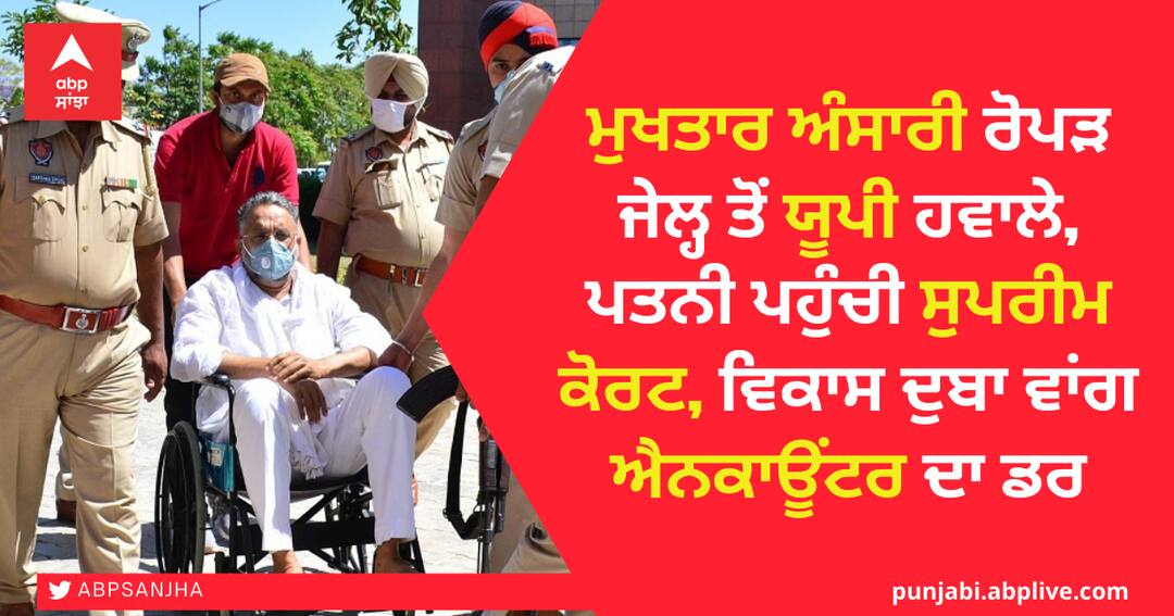 ਇਸ ਵਿਚਕਾਰ ਮੁਖਤਾਰ ਅੰਸਾਰੀ ਦੀ ਪਤਨੀ ਨੇ ਸੁਪਰੀਮ ਕੋਰਟ 'ਚ ਪਟੀਸ਼ਨ ਦਾਇਰ ਕੀਤੀ ਹੈ। ਇਸ 'ਚ ਮੁਖਤਾਰ ਅੰਸਾਰੀ ਨੂੰ ਰੋਪੜ ਤੋਂ ਬਾਂਦਾ ਲਿਜਾਣ ਸਮੇਂ ਪੁਖਤਾ ਸੁਰੱਖਿਆ ਦੀ ਮੰਗ ਕੀਤੀ ਗਈ ਹੈ। ਅਦਾਲਤ 'ਚ ਪੇਸ਼ੀ ਦੌਰਾਨ ਵੀ ਜਾਨ ਨੂੰ ਖ਼ਤਰਾ ਦੱਸਿਆ ਗਿਆ ਹੈ। ਪਟੀਸ਼ਨ 'ਚ ਵਿਕਾਸ ਦੂਬੇ ਐਨਕਾਊਂਟਰ ਮਾਮਲੇ ਦੀ ਉਦਾਹਰਣ ਦਿੱਤੀ ਗਈ ਹੈ। ਹਾਲਾਂਕਿ, ਅਰਜ਼ੀ 'ਤੇ ਅਜੇ ਸੁਣਵਾਈ ਨਹੀਂ ਹੋਈ ਹੈ। ਮੁਖਤਾਰ ਅੰਸਾਰੀ ਦੀ ਪਤਨੀ ਵੱਲੋਂ ਸੁਪਰੀਮ ਕੋਰਟ 'ਚ ਦਾਇਰ ਪਟੀਸ਼ਨ 'ਚ ਮੰਗ ਕੀਤੀ ਗਈ ਹੈ ਕਿ ਮੁਖਤਾਰ ਦੀ ਸੁਰੱਖਿਆ ਦਾ ਪੂਰਾ ਧਿਆਨ ਰੱਖਿਆ ਜਾਵੇ। ਉਨ੍ਹਾਂ ਨੂੰ ਡਰ ਹੈ ਕਿ ਪੰਜਾਬ ਤੋਂ ਯੂਪੀ ਲਿਜਾਣ ਸਮੇਂ ਮੁਖਤਾਰ ਅੰਸਾਰੀ ਦਾ ਝੂਠਾ ਐਨਕਾਊਂਟਰ ਨਾ ਕਰ ਦਿੱਤਾ ਜਾਵੇ। ਮੁਖਤਾਰ ਨੂੰ ਸੁਤੰਤਰ ਤੇ ਨਿਰਪੱਖ ਟ੍ਰਾਇਲ ਦਾ ਮੌਕਾ ਮਿਲਣਾ ਚਾਹੀਦਾ ਹੈ। ਇਸ ਦੇ ਨਾਲ ਹੀ ਪਟੀਸ਼ਨ 'ਚ ਇਹ ਵੀ ਕਿਹਾ ਗਿਆ ਹੈ ਕਿ ਮੁਖਤਾਰ ਨੂੰ ਜੇਲ 'ਚ ਸ਼ਿਫ਼ਟ ਕਰਨ ਸਮੇਂ ਪੂਰੀ ਯਾਤਰਾ ਦੀ ਵੀਡੀਓਗ੍ਰਾਫ਼ੀ ਹੋਣੀ ਚਾਹੀਦੀ ਹੈ। ਇਸ ਤੋਂ ਇਲਾਵਾ ਮੰਗ ਕੀਤੀ ਗਈ ਹੈ ਕਿ ਮੁਖਤਾਰ ਅੰਸਾਰੀ ਨੂੰ ਰੋਪੜ ਤੋਂ ਬਾਂਦਾ ਭੇਜਣ ਦੀ ਕਾਰਵਾਈ ਕੇਂਦਰੀ ਸੁਰੱਖਿਆ ਬਲਾਂ ਦੇ ਸੁਰੱਖਿਆ ਘੇਰੇ 'ਚ ਹੋਣੀ ਚਾਹੀਦੀ ਹੈ। ਦੱਸ ਦਈਏ ਕਿ ਬਾਹੂਬਲੀ ਵਿਧਾਇਕ ਮੁਖਤਾਰ ਅੰਸਾਰੀ ਨੂੰ ਬੰਦਾ ਜੇਲ ਲਿਆਉਣ ਲਈ ਪੁਲਿਸ ਦੀ ਭਾਰੀ ਫ਼ੋਰਸ ਸੋਮਵਾਰ ਸਵੇਰੇ ਪੰਜਾਬ ਲਈ ਰਵਾਨਾ ਹੋ ਗਈ ਸੀ। ਇਸ ਟੀਮ 'ਚ ਇਕ ਪੀਏਸੀ ਕੰਪਨੀ, ਕਈ ਪੁਲਿਸ ਫ਼ੋਰਸ ਗੱਡੀਆਂ ਅਤੇ ਐਂਬੂਲੈਂਸ ਸ਼ਾਮਲ ਹੈ। ਇਸ ਤੋਂ ਪਹਿਲਾਂ ਐਤਵਾਰ ਨੂੰ ਦਿੱਲੀ ਤੋਂ ਆਏ ਇੰਜੀਨੀਅਰਾਂ ਨੇ ਬਾਂਦਾ ਜੇਲ ਦੇ ਸੀਸੀਟੀਵੀ ਕੈਮਰਿਆਂ ਅਤੇ ਜੈਮਰਾਂ ਦੀ ਜਾਂਚ ਕੀਤੀ ਅਤੇ ਇਨ੍ਹਾਂ 'ਚ ਕਮੀਆਂ ਨੂੰ ਦੂਰ ਕੀਤਾ। ਰੋਪੜ ਜੇਲ 'ਚ ਬੰਦ ਹੈ ਮੁਖਤਾਰ ਅੰਸਾਰੀਮੁਖਤਾਰ ਅੰਸਾਰੀ ਇਕ ਮਾਮਲੇ 'ਚ ਪੰਜਾਬ ਦੀ ਰੋਪੜ ਜੇਲ 'ਚ ਬੰਦ ਸੀ। ਅੰਸਾਰੀ ਨੂੰ ਲਿਆਉਣ ਲਈ ਯੂਪੀ ਸਰਕਾਰ ਤੇ ਪੰਜਾਬ ਸਰਕਾਰ ਵਿਚਕਾਰ ਸੁਪਰੀਮ ਕੋਰਟ ਤਕ ਮਾਮਲਾ ਚਲਾ ਗਿਆ ਸੀ। ਬੀਤੀ 26 ਮਾਰਚ ਨੂੰ ਸੁਪਰੀਮ ਕੋਰਟ ਨੇ ਫ਼ੈਸਲਾ ਸੁਣਾਉਂਦੇ ਹੋਏ ਮੁਖਤਾਰ ਅੰਸਾਰੀ ਨੂੰ ਉੱਤਰ ਪ੍ਰਦੇਸ਼ ਭੇਜਣ ਦਾ ਆਦੇਸ਼ ਦਿੱਤਾ ਸੀ। ਸੁਪਰੀਮ ਕੋਰਟ ਨੇ ਮੁਖਤਾਰ ਨੂੰ ਦੋ ਹਫ਼ਤਿਆਂ 'ਚ ਉੱਤਰ ਪ੍ਰਦੇਸ਼ ਭੇਜਣ ਦਾ ਨਿਰਦੇਸ਼ ਦਿੱਤਾ ਸੀ।