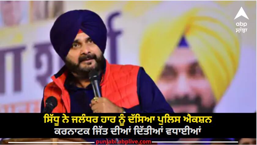 Punjab News : ਪੰਜਾਬ ਕਾਂਗਰਸ ਦੇ ਸੀਨੀਅਰ ਨੇਤਾ ਨਵਜੋਤ ਸਿੱਧੂ ਨੇ ਜਲੰਧਰ ਲੋਕ ਸਭਾ ਜ਼ਿਮਨੀ ਚੋਣ 'ਚ ਕਾਂਗਰਸ ਪਾਰਟੀ ਦੀ ਹਾਰ ਅਤੇ ਕਰਨਾਟਕ ਵਿਧਾਨ ਸਭਾ ਚੋਣਾਂ 'ਚ ਪਾਰਟੀ ਦੀ ਜਿੱਤ 'ਤੇ ਟਵੀਟ ਕੀਤਾ ਹੈ। ਸਿੱਧੂ ਨੇ ਜਲੰਧਰ ਉਪ ਚੋਣ ਵਿੱਚ ਕਾਂਗਰਸ ਦੀ ਹਾਰ ਅਤੇ ਆਮ ਆਦਮੀ ਪਾਰਟੀ (ਆਪ) ਦੇ ਉਮੀਦਵਾਰ ਦੀ ਜਿੱਤ ਨੂੰ ਪੁਲਿਸ ਦੀ ਕਾਰਵਾਈ ਕਰਾਰ ਦਿੱਤਾ। ਇਸ ਦੇ ਨਾਲ ਹੀ ਕਰਨਾਟਕ 'ਚ ਕਾਂਗਰਸ ਦੀ ਸ਼ਾਨਦਾਰ ਜਿੱਤ 'ਤੇ ਪਾਰਟੀ ਦੀ ਸੀਨੀਅਰ ਲੀਡਰਸ਼ਿਪ ਨੂੰ ਵਧਾਈ ਦਿੱਤੀ।