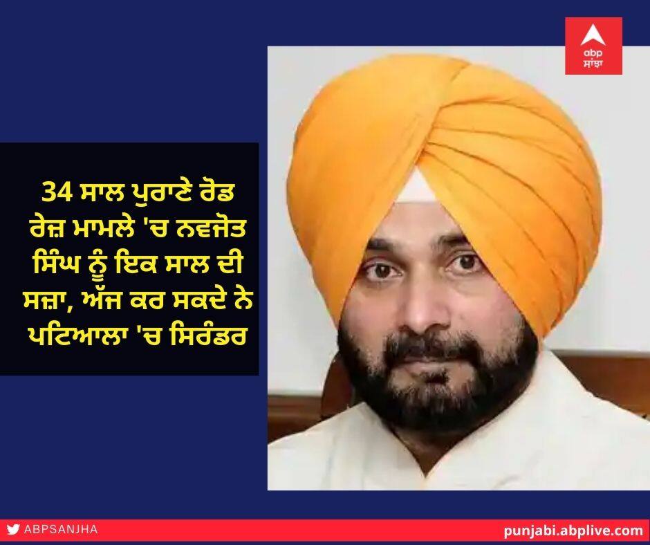 ਚੰਡੀਗੜ੍ਹ : 34 ਸਾਲ ਪੁਰਾਣੇ ਰੋਡ ਰੇਜ ਮਾਮਲੇ 'ਚ ਨਵਜੋਤ ਸਿੰਘ ਅੱਜ ਪਟਿਆਲਾ 'ਚ ਸਿਰੰਡਰ ਕਰ ਸਕਦੇ ਹਨ। ਸੁਪਰੀਮ ਕੋਰਟ ਨੇ ਵੀਰਵਾਰ ਨੂੰ ਕ੍ਰਿਕਟਰ ਤੋਂ ਸਿਆਸਤਦਾਨ ਬਣੇ ਨਵਜੋਤ ਸਿੰਘ ਸਿੱਧੂ ਨੂੰ 1988 ਦੇ ਰੋਡ ਰੇਜ ਕੇਸ ਵਿੱਚ ਇੱਕ ਸਾਲ ਦੀ ਸਜ਼ਾ ਸੁਣਾਈ ਹੈ। ਜਸਟਿਸ ਏ ਐਮ ਖਾਨਵਿਲਕਰ ਅਤੇ ਐਸਕੇ ਕੌਲ ਦੇ ਬੈਂਚ ਨੇ ਸਿੱਧੂ ਨੂੰ ਦਿੱਤੀ ਗਈ ਸਜ਼ਾ ਦੇ ਮੁੱਦੇ 'ਤੇ ਪੀੜਤ ਪਰਿਵਾਰ ਵੱਲੋਂ ਦਾਇਰ ਸਮੀਖਿਆ ਪਟੀਸ਼ਨ ਨੂੰ ਮਨਜ਼ੂਰੀ ਦੇ ਦਿੱਤੀ। ਹਾਲਾਂਕਿ ਸੁਪਰੀਮ ਕੋਰਟ ਨੇ ਮਈ 2018 ਵਿੱਚ ਸਿੱਧੂ ਨੂੰ ਇਸ ਮਾਮਲੇ ਵਿੱਚ ਇੱਕ 65 ਸਾਲਾ ਵਿਅਕਤੀ ਨੂੰ 'ਜਾਣ ਬੁੱਝ ਕੇ ਸੱਟ ਪਹੁੰਚਾਉਣ' ਦੇ ਜੁਰਮ ਲਈ ਦੋਸ਼ੀ ਠਹਿਰਾਇਆ ਸੀ ਪਰ 1,000 ਰੁਪਏ ਦਾ ਜੁਰਮਾਨਾ ਲਗਾਉਣ ਤੋਂ ਬਾਅਦ ਬਰੀ ਕਰ ਦਿੱਤਾ ਗਿਆ ਸੀ।