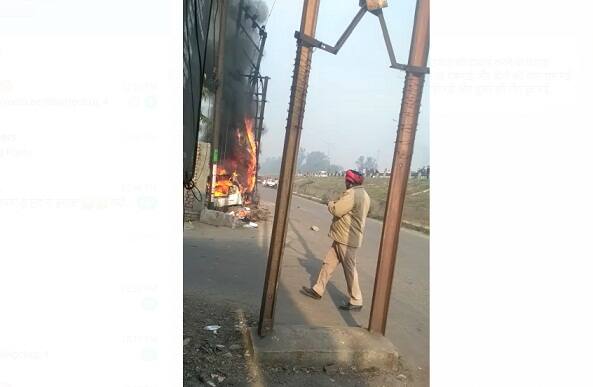 ਬੇਕਾਬੂ ਹੋਈ ਕਾਰ ਮੋਟਰਸਾਈਕਲ ਸਵਾਰਾਂ ਨੂੰ ਘੜੀਸਦੀ ਹੋਈ ਬਿਜਲੀ ਦੇ ਖੰਭੇ ਨਾਲ ਜਾ ਟਕਰਾਈ। ਬਿਜਲੀ ਨਾਲ ਦੋਵਾਂ ਮੋਟਰਸਾਈਕਲ ਸਵਾਰਾਂ ਨੂੰ ਅੱਗ ਲੱਗ ਗਈ। ਇੱਕ ਦੀ ਮੌਤ ਹੋ ਗਈ ਤੇ ਦੂਜੇ ਦੀ ਲੱਤ ਟੁੱਟ ਗਈ ਗਈ ਹੈ।