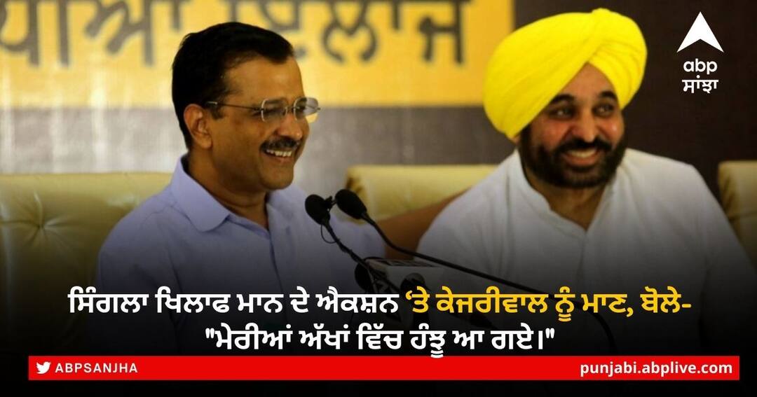 ਨਵੀਂ ਦਿੱਲੀ: ਪੰਜਾਬ ਦੇ ਮੁੱਖ ਮੰਤਰੀ ਭਗਵੰਤ ਮਾਨ ਵੱਲੋਂ ਕਥਿਤ ਭ੍ਰਿਸ਼ਟਾਚਾਰ ਦੇ ਮਾਮਲੇ ਵਿੱਚ ਸਿਹਤ ਮੰਤਰੀ ਵਿਜੇ ਸਿੰਗਲਾ ਨੂੰ ਬਰਖਾਸਤ ਕਰਨ ਦੀ ਆਮ ਆਦਮੀ ਪਾਰਟੀ ਦੇ ਸੁਪਰੀਮੋ ਅਰਵਿੰਦ ਕੇਜਰੀਵਾਲ ਨੇ ਪ੍ਰਸੰਸਾ ਕੀਤੀ ਹੈ। ਉਨ੍ਹਾਂ ਨੇ ਭਗਵੰਤ ਮਾਨ ਦੀ ਸ਼ਲਾਘਾ ਕਰਦਿਆਂ ਕਿਹਾ ਕਿ ਇਸ ਕਦਮ ਨਾਲ "ਮੇਰੀਆਂ ਅੱਖਾਂ ਵਿੱਚ ਹੰਝੂ ਆ ਗਏ।"