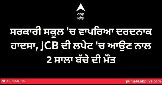 ਕਪੂਰਥਲਾ: ਸੁਲਤਾਨਪੁਰ ਲੋਧੀ 'ਚ ਸਰਕਾਰੀ ਸੀਨੀਅਰ ਸੈਕੰਡਰੀ ਸਕੂਲ 'ਚ ਜੇਸੀਬੀ ਦੀ ਚਪੇਟ ਚ ਆਉਣ ਨਾਲ 2 ਸਾਲਾ ਬੱਚੇ ਦੀ ਮੌਤ ਹੋਈ।ਘਟਨਾ ਮਗਰੋਂ ਜੇ.ਸੀ.ਬੀ ਚਾਲਕ ਮੌਕੇ ਤੋਂ ਫ਼ਰਾਰ ਹੈ।ਸਮਾਰਟ ਸਿਟੀ ਪ੍ਰਾਜੈਕਟ ਅਧੀਨ ਸੁਲਤਾਨਪੁਰ ਲੋਧੀ ਦੇ ਸਰਕਾਰੀ ਸੀਨੀਅਰ ਸਕੈਡਰੀ ਸਕੂਲ (ਲੜਕਿਆਂ) ਵਿੱਚ ਨਵੀਂ ਇਮਾਰਤ ਦੀ ਉਸਾਰੀ ਦਾ ਕੰਮ ਚੱਲ ਰਿਹਾ ਹੈ। ਉਸਾਰੀ ਦਾ ਕੰਮ ਕਰਨ ਵਾਲੇ ਪਰਵਾਸੀ ਮਜ਼ਦੂਰਾਂ ਵੱਲੋਂ ਸਕੂਲ ਅੰਦਰ ਹੀ ਆਰਜ਼ੀ ਘਰ ਬਣਾਕੇ ਰਿਹਾਇਸ਼ ਕੀਤੀ ਗਈ ਹੈ।