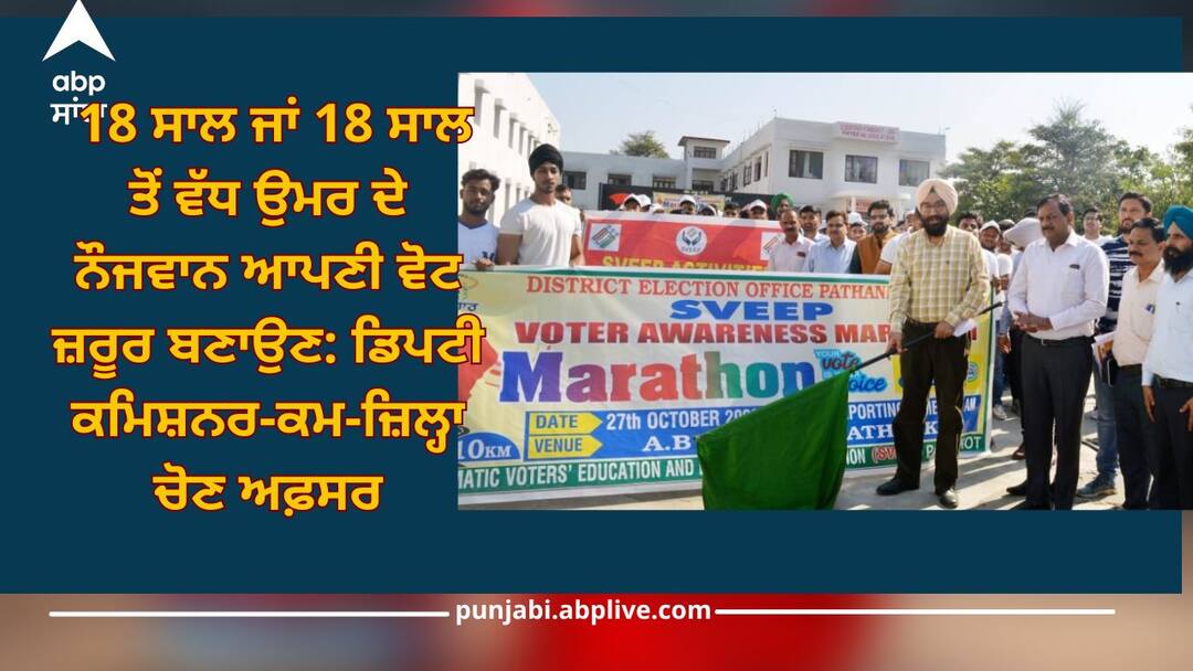 Punjab News: ਭਾਰਤ ਚੋਣ ਕਮਿਸ਼ਨਰ ਦੀਆਂ ਹਦਾਇਤਾਂ ਅਨੁਸਾਰ ਜਿਹੜੇ ਨੌਜਵਾਨਾਂ/ ਵਿਅਕਤੀਆਂ ਦੀ ਮਿਤੀ 01.01.2024 ਨੂੰ 18 ਸਾਲ ਜਾਂ 18 ਸਾਲ ਤੋਂ ਵੱਧ ਉਮਰ ਹੋ ਗਈ ਹੈ, ਉਨ੍ਹਾਂ ਨੂੰ ਵੋਟ ਬਣਾਉਣ ਅਤੇ ਆਪਣੀ ਵੋਟ ਦੇ ਹੱਕ ਦਾ ਇਸਤੇਮਾਲ ਕਰਨ ਸਬੰਧੀ ਜਾਗਰੂਕ ਕਰਨ ਲਈ ਇੱਕ ਮਿੰਨੀ ਮੈਰਾਥਨ ਦੌੜ ਦਾ ਆਯੋਜਨ ਅਦਰਸ ਭਾਰਤੀਯ ਕਾਲਜ ਪਠਾਨਕੋਟ ਤੋਂ ਆਯੋਜਨ ਕੀਤਾ ਗਿਆ।