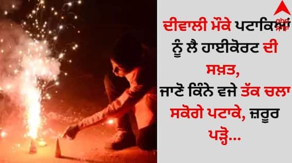 High court on Firecrackers: ਦੀਵਾਲੀ ਮੌਕੇ ਜ਼ਿਆਦਾਤਰ ਲੋਕ ਪਟਾਕੇ ਚਲਾਉਂਦੇ ਹਨ। ਹਾਲਾਂਕਿ ਇਸ ਨਾਲ ਹਵਾ ਪ੍ਰਦੂਸ਼ਣ ਕਾਫੀ ਹੱਦ ਤੱਕ ਵੱਧ ਜਾਂਦਾ ਹੈ। ਦੱਸ ਦੇਈਏ ਕਿ ਦੀਵਾਲੀ ਤੋਂ ਪਹਿਲਾਂ ਪੰਜਾਬ ਅਤੇ ਹਰਿਆਣਾ ਹਾਈ ਕੋਰਟ ਨੇ ਪੰਜਾਬ, ਹਰਿਆਣਾ ਅਤੇ ਚੰਡੀਗੜ੍ਹ ਵਿੱਚ ਪਟਾਕੇ ਚਲਾਉਣ ਸਬੰਧੀ ਸਖ਼ਤ ਹੁਕਮ ਜਾਰੀ ਕੀਤੇ ਹਨ। ਇਸ ਮਾਮਲੇ ਨੂੰ ਲੈ ਕੇ ਅਦਾਲਤ ਵਿੱਚ ਜਨਹਿਤ ਪਟੀਸ਼ਨ ਦਾਇਰ ਕੀਤੀ ਗਈ ਸੀ। ਜਿਸ ਤੋਂ ਬਾਅਦ ਹੁਣ ਹਾਈ ਕੋਰਟ ਵੱਲੋਂ ਹੁਕਮ ਜਾਰੀ ਕਰ ਦਿੱਤੇ ਗਏ ਹਨ। ਆਖਿਰ ਇਨ੍ਹਾਂ ਮੁਤਾਬਕ ਲੋਕ ਕਦੋਂ ਤੋਂ ਲੈ ਕੇ ਕਦੋਂ ਤੱਕ ਪਟਾਕੇ ਚਲਾ ਸਕਣਗੇ ਇਸ ਬਾਰੇ ਵੀ ਦੱਸਿਆ ਗਿਆ ਹੈ। ਤੁਸੀ ਵੀ ਇਹ ਖਬਰ ਜ਼ਰੂਰ ਪੜ੍ਹ ਲਓ...