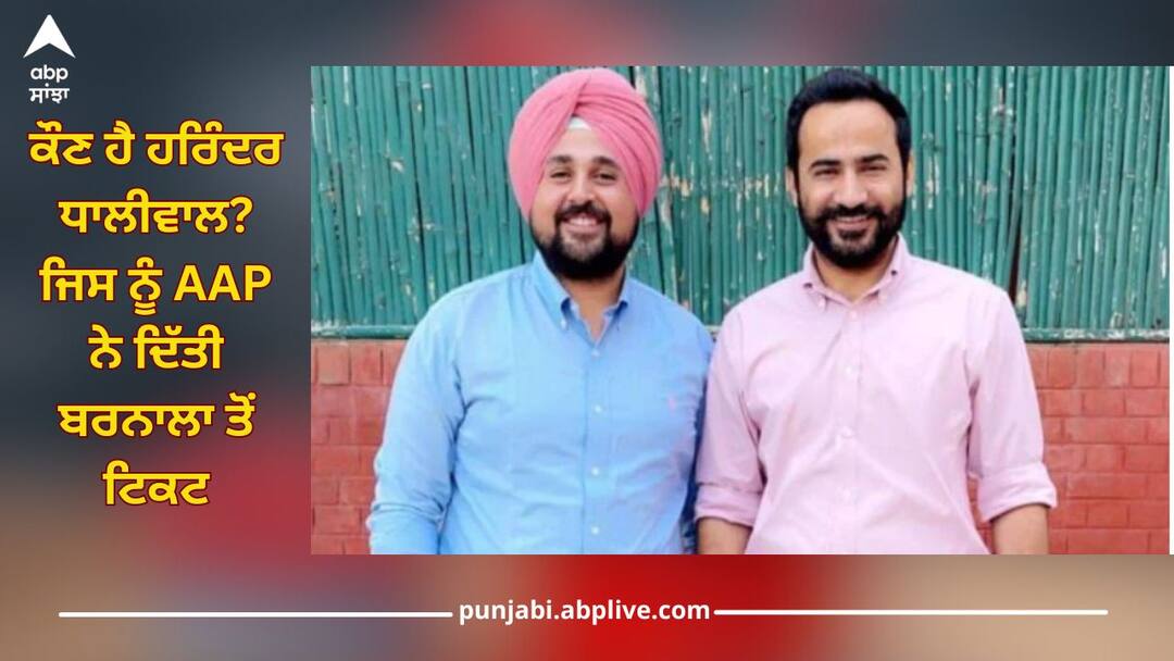 ਆਮ ਆਦਮੀ ਪਾਰਟੀ ਨੇ ਬਰਨਾਲਾ ਸੀਟ ਤੋਂ ਹਰਿੰਦਰ ਸਿੰਘ ਧਾਲੀਵਾਲ (35) ਨੂੰ ਟਿਕਟ ਦਿੱਤੀ ਹੈ। ਹਰਿੰਦਰ ਸਿੰਘ ਧਾਲੀਵਾਲ ਬਰਨਾਲਾ ਤੋਂ ਆਮ ਆਦਮੀ ਪਾਰਟੀ ਦੇ ਸਾਬਕਾ ਵਿਧਾਇਕ ਅਤੇ ਸੰਗਰੂਰ ਤੋਂ ਸੰਸਦ ਮੈਂਬਰ ਗੁਰਮੀਤ ਸਿੰਘ ਮੀਤ ਹੇਅਰ ਦੇ ਕਰੀਬੀ ਹਨ। ਹਰਿੰਦਰ ਸਿੰਘ ਧਾਲੀਵਾਲ ਬਰਨਾਲਾ ਜ਼ਿਲ੍ਹੇ ਦੇ ਪਿੰਡ ਛੀਨੀਵਾਲ ਦੇ ਇੱਕ ਕਿਸਾਨ ਪਰਿਵਾਰ ਨਾਲ ਸਬੰਧਤ ਹਨ। ਪਿਤਾ ਪਸ਼ੂ ਪਾਲਣ ਵਿਭਾਗ ਤੋਂ ਸੇਵਾਮੁਕਤ ਕਰਮਚਾਰੀ ਹਨ।