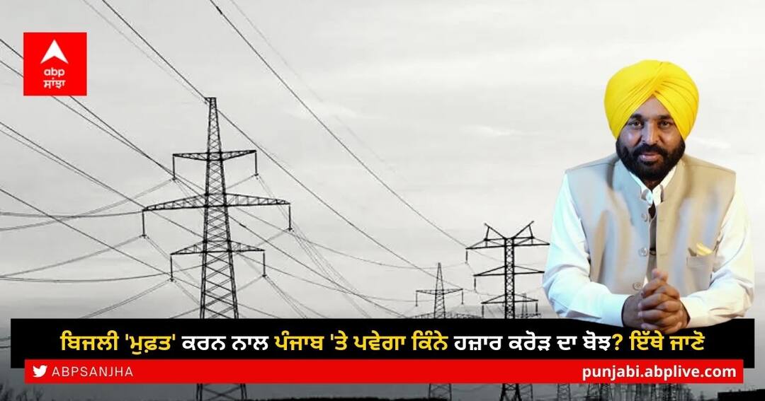 Punjab Free Electricity: ਸ਼ਨੀਵਾਰ 16 ਅਪ੍ਰੈਲ ਨੂੰ ਪੰਜਾਬ ਦੀ ਭਗਵੰਤ ਮਾਨ ਸਰਕਾਰ ਦੇ ਕਾਰਜਕਾਲ ਦਾ ਇੱਕ ਮਹੀਨਾ ਪੂਰਾ ਹੋ ਗਿਆ ਹੈ। ਇਸ ਦੇ ਨਾਲ ਹੀ ਪੰਜਾਬ ਸਰਕਾਰ ਨੇ ਆਪਣਾ ਚੋਣ ਵਾਅਦਾ ਪੂਰਾ ਕਰਦੇ ਹੋਏ 1 ਜੁਲਾਈ ਤੋਂ ਸੂਬੇ ਦੇ ਹਰ ਘਰ ਲਈ 300 ਯੂਨਿਟ ਮੁਫਤ ਬਿਜਲੀ ਦੇਣ ਦਾ ਐਲਾਨ ਵੀ ਕੀਤਾ ਹੈ। ਹਾਲਾਂਕਿ ਸਰਕਾਰ ਨੇ ਮੁਫਤ ਬਿਜਲੀ ਦੇਣ ਦਾ ਐਲਾਨ ਕੀਤਾ ਹੈ ਪਰ ਇਸ ਨਾਲ ਸੂਬੇ 'ਤੇ 23 ਹਜ਼ਾਰ ਕਰੋੜ ਰੁਪਏ ਤੋਂ ਵੱਧ ਦਾ ਵਾਧੂ ਬੋਝ ਪਵੇਗਾ।