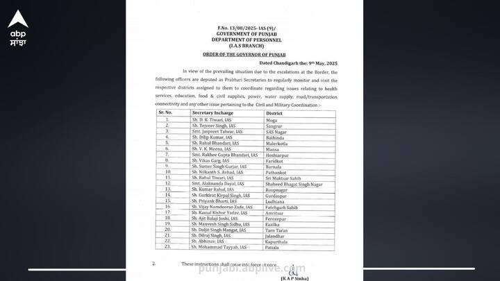 Punjab News: ਪੰਜਾਬ ਸਰਕਾਰ ਵੱਲੋਂ ਅਹਿਮ ਫੈਸਲਾ, ਸਾਰੇ ਜ਼ਿਲ੍ਹਿਆਂ 'ਚ ਸੀਨੀਅਰ IAS ਅਧਿਕਾਰੀ ਕੀਤੇ ਤਾਇਨਾਤ, ਸੌਂਪੀ ਇਹ ਜ਼ਿੰਮੇਵਾਰੀ
