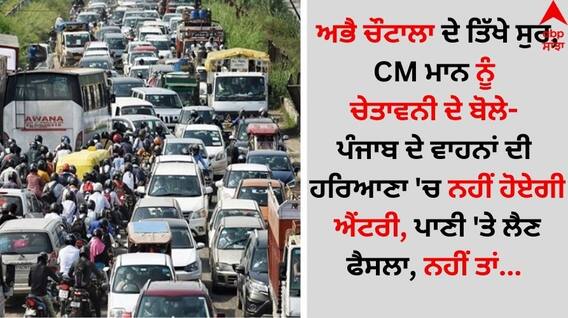 Punjab News: ਪੰਜਾਬ ਲਈ ਅਹਿਮ ਖ਼ਬਰ ਆ ਰਹੀ ਹੈ। ਦਰਅਸਲ, ਇਨੈਲੋ ਦੇ ਰਾਸ਼ਟਰੀ ਪ੍ਰਧਾਨ ਅਭੈ ਚੌਟਾਲਾ ਨੇ ਪਾਣੀ ਦੇ ਮੁੱਦੇ 'ਤੇ ਹੈਰਾਨ ਕਰਨ ਵਾਲਾ ਫੈਸਲਾ ਸੁਣਾਇਆ ਹੈ। ਉਨ੍ਹਾਂ ਨੇ ਕਿਹਾ ਕਿ ਜੇਕਰ 25 ਮਈ ਤੱਕ ਪਾਣੀ ਨਹੀਂ ਮਿਲਿਆ, ਤਾਂ ਅਸੀਂ ਪੰਜਾਬ ਦੇ ਕਿਸੇ ਵੀ ਸਰਕਾਰੀ ਵਾਹਨ ਨੂੰ ਹਰਿਆਣਾ-ਪੰਜਾਬ ਸਰਹੱਦ ਤੋਂ ਨਹੀਂ ਲੰਘਣ ਦੇਵਾਂਗੇ। ਇਹ ਇੱਕ ਦਿਨ ਲਈ ਹੋਵੇਗਾ। ਜੇਕਰ ਪਾਣੀ ਫਿਰ ਵੀ ਨਹੀਂ ਮਿਲਿਆ, ਤਾਂ ਅਸੀਂ ਇਸਨੂੰ ਵਧਾ ਦੇਵਾਂਗੇ। ਜੇਕਰ ਸਾਨੂੰ ਲੋੜ ਪਈ ਤਾਂ ਅਸੀਂ ਪੰਜਾਬ ਦੇ ਹਰ ਵਾਹਨ ਨੂੰ ਰੋਕਾਂਗੇ।
