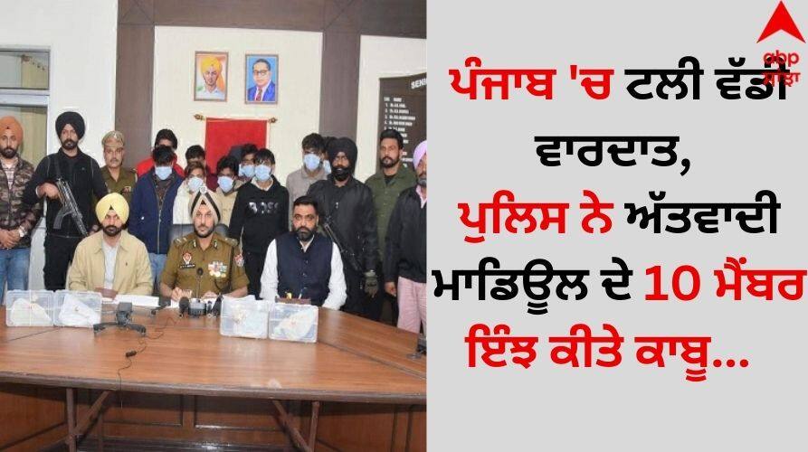 Punjab News: ਪੰਜਾਬ ਨੂੰ ਇੱਕ ਸੁਰੱਖਿਅਤ ਸੂਬਾ ਬਣਾਉਣ ਲਈ ਚਲਾਈ ਗਈ ਕਾਰਵਾਈ ਦੌਰਾਨ ਕਮਿਸ਼ਨਰੇਟ ਪੁਲਿਸ (ਸੀ.ਪੀ.) ਅੰਮ੍ਰਿਤਸਰ ਨੇ ਪਾਕਿਸਤਾਨ ਆਧਾਰਿਤ ਹਰਵਿੰਦਰ ਰਿੰਦਾ ਅਤੇ ਵਿਦੇਸ਼ ਆਧਾਰਿਤ ਹੈਪੀ ਪਾਸਿਅਣ, ਜੀਵਨ ਫੌਜੀ ਅਤੇ ਜਸ਼ਨਪ੍ਰੀਤ ਸਿੰਘ ਉਰਫ਼ ਲਾਲ ਦੁਆਰਾ ਸੰਚਾਲਿਤ ਸਰਹੱਦ ਪਾਰ ਅੱਤਵਾਦੀ ਮਾਡਿਊਲ ਦੇ 4 ਮੁੱਖ ਸੰਚਾਲਕਾਂ ਸਮੇਤ 10 ਵਿਅਕਤੀਆਂ ਨੂੰ ਗ੍ਰਿਫਤਾਰ ਕਰਕੇ ਬਟਾਲਾ ਖੇਤਰ ਵਿੱਚ ਪੁਲਿਸ ਵਿਭਾਗ 'ਤੇ ਸੰਭਾਵਿਤ ਗ੍ਰਨੇਡ ਹਮਲੇ ਨੂੰ ਟਾਲਣ ਵਿਚ ਸਫਲਤਾ ਹਾਸਿਲ ਹੋਈ।