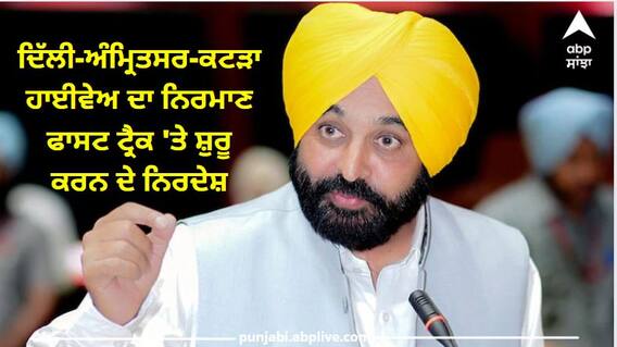 Punjab News: ਪੰਜਾਬ ਦੇ ਮੁੱਖ ਮੰਤਰੀ ਭਗਵੰਤ ਮਾਨ ਨੇ ਸੋਮਵਾਰ ਨੂੰ ਦਿੱਲੀ-ਅੰਮ੍ਰਿਤਸਰ-ਕਟੜਾ ਨੈਸ਼ਨਲ ਹਾਈਵੇਅ ਦੇ ਨਿਰਮਾਣ ਨੂੰ ਫਾਸਟ ਟਰੈਕ ਮੋਡ 'ਤੇ ਸ਼ੁਰੂ ਕਰਨ ਦੇ ਨਿਰਦੇਸ਼ ਜਾਰੀ ਕੀਤੇ ਹਨ। ਲੋਕ ਨਿਰਮਾਣ ਵਿਭਾਗ (ਪੀ.ਡਬਲਿਊ.ਡੀ.) ਦੀ ਸਮੀਖਿਆ ਮੀਟਿੰਗ ਦੀ ਪ੍ਰਧਾਨਗੀ ਕਰਦਿਆਂ ਮੁੱਖ ਮੰਤਰੀ ਨੇ ਅਧਿਕਾਰੀਆਂ ਨੂੰ ਕਿਹਾ ਕਿ ਉਹ ਸਾਰੇ ਪ੍ਰਵਾਨਿਤ ਕੰਮਾਂ ਨੂੰ ਸਮੇਂ ਸਿਰ ਮੁਕੰਮਲ ਕਰਨ ਲਈ ਪਹਿਲ ਦੇਣ।