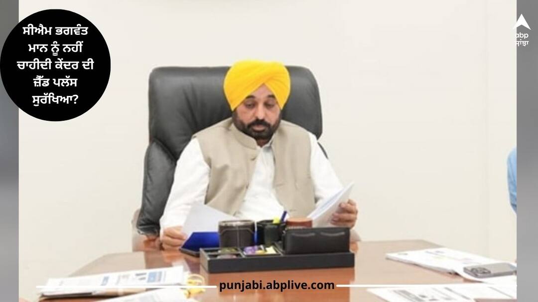 ਹਾਸਲ ਜਾਣਕਾਰੀ ਮੁਤਾਬਕ ਸੀਐਮ ਸੁਰੱਖਿਆ ਟੀਮ ਨੇ ਕੇਂਦਰ ਨੂੰ ਪੱਤਰ ਲਿਖ ਕੇ ਕਿਹਾ ਹੈ ਕਿ ਮੁੱਖ ਮੰਤਰੀ ਭਗਵੰਤ ਮਾਨ ਨੂੰ ਪੰਜਾਬ ਤੇ ਦਿੱਲੀ ਵਿੱਚ ਕੇਂਦਰ ਦੀ ਜ਼ੈੱਡ ਪਲੱਸ ਸੁਰੱਖਿਆ ਦੀ ਲੋੜ ਨਹੀਂ ਹੈ। ਸੀਐਮ ਮਾਨ ਦੀ ਸੁਰੱਖਿਆ ਲਈ ਪੰਜਾਬ ਤੇ ਦਿੱਲੀ ਵਿੱਚ ਪੰਜਾਬ ਪੁਲਿਸ ਤੇ ਸੀਐਮ ਸੁਰੱਖਿਆ ਦੀਆਂ ਵਿਸ਼ੇਸ਼ ਟੀਮਾਂ ਕਾਫੀ ਹਨ।