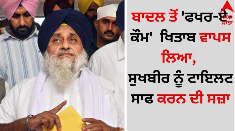Punjab News: ਸ੍ਰੀ ਅਕਾਲ ਤਖ਼ਤ ਸਾਹਿਬ ਤੋਂ ਸੁਖਬੀਰ ਬਾਦਲ ਤੇ ਸਾਬਕਾ ਅਕਾਲੀ ਮੰਤਰੀਆਂ ਨੂੰ ਸਜ਼ਾ ਸੁਣਾਈ ਗਈ ਹੈ। ਇਸ ਦੇ ਨਾਲ ਹੀ ਮਰਹੂਮ ਪ੍ਰਕਾਸ਼ ਸਿੰਘ ਬਾਦਲ ਤੋਂ 'ਫਖਰ-ਏ-ਕੌਮ' ਖਿਤਾਬ ਵਾਪਸ ਲੈ ਲਿਆ ਹੈ। ਪੰਜ ਸਿੰਘ ਸਹਿਬਾਨ ਵੱਲੋਂ ਸੁਖਬੀਰ ਬਾਦਲ ਤੇ ਸਾਬਕਾ ਅਕਾਲੀ ਮੰਤਰੀਆਂ ਨੂੰ ਬਰਤਨ ਸਾਫ ਕਰਨ ਤੇ ਲੰਗਰ ਦੀ ਸੇਵਾ ਲਾਈ ਗਈ ਹੈ। ਇਸ ਤੋਂ ਇਲਾਵਾ ਟਾਇਲਟ ਸਫਾਈ ਦੀ ਸਜ਼ਾ ਵੀ ਦਿੱਤੀ ਗਈ ਹੈ। ਸ੍ਰੀ ਅਕਾਲ ਤਖ਼ਤ ਸਾਹਿਬ ਦੇ ਜਥੇਦਾਰ ਨੇ ਕਿਹਾ ਕਿ ਸਾਰੇ ਸਜ਼ਾਯਾਫਤਾ ਲੀਡਰ ਕੀਰਤਨ ਸਰਵਨ ਕਰਨ।