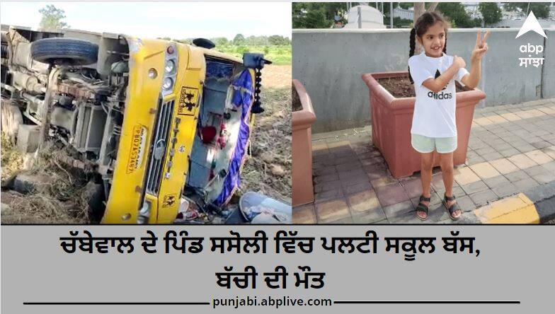 ਹੁਸ਼ਿਆਰਪੁਰ : ਹਲਕਾ ਚੱਬੇਵਾਲ ਦੇ ਪਿੰਡ ਸਸੋਲੀ 'ਚ ਦਰਦਨਾਕ ਹਾਦਸਾ ਵਾਪਰਿਆ। ਜਿਸ 'ਚ ਇੱਕ ਬੱਚੀ ਦੀ ਜਾਨ ਚਲੀ ਗਈ। ਕਿਸੇ ਵਾਹਨ ਨੂੰ ਓਵਰਟੇਕ ਕਰਦੇ ਸਮੇਂ ਦਿੱਲੀ ਇੰਟਰਨੈਸ਼ਨਲ ਸਕੂਲ ਦੀ ਬਸ ਦਾ ਸੰਤੁਲਨ ਵਿਗੜ ਗਿਆ ਜਿਸ ਕਾਰਨ ਬੱਸ ਪਲਟ ਗਈ ਅਤੇ ਹਾਦਸੇ 'ਚ ਕਈ ਬੱਚੇ ਜ਼ਖਮੀ ਹੋ ਗਏ ਜਦਕਿ ਇੱਕ ਸਾਢੇ 6 ਸਾਲ ਦੀ ਬੱਚੀ ਜਸਨੂਰ ਕੌਰ ਦੀ ਮੌਤ ਹੋ ਗਈ।