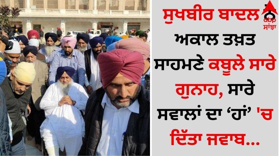 ਇਸ ਦੌਰਾਨ ਤਨਖ਼ਾਹੀਆ ਐਲਾਨੇ ਗਏ ਸੁਖਬੀਰ ਬਾਦਲ ਦੇ ਮਾਮਲੇ ਸਬੰਧੀ ਸ਼੍ਰੀ ਅਕਾਲ ਤਖਤ ਸਾਹਿਬ ਵਿਖੇ ਪੰਜ ਸਿੰਘ ਸਾਹਿਬਾਨ ਦੀ ਮੀਟਿੰਗ ਹੋਈ, ਜਿਸ ਵਿੱਚ ਸ਼੍ਰੀ ਅਕਾਲ ਤਖਤ ਸਾਹਿਬ ਤੋਂ ਸੁਖਬੀਰ ਬਾਦਲ ਅਤੇ ਸ਼੍ਰੋਮਣੀ ਅਕਾਲੀ ਦਲ ਦੇ ਹੋਰ ਆਗੂਆਂ ਖਿਲਾਫ ਫੈਸਲਾ ਸੁਣਾਇਆ ਜਾ ਰਿਹਾ ਹੈ। ਇਸ ਦੌਰਾਨ ਸੁਖਬੀਰ ਬਾਦਲ ਨੇ ਆਪਣੇ 'ਤੇ ਲੱਗੇ ਲਗਭਗ ਸਾਰੇ ਦੋਸ਼ਾਂ ਨੂੰ ਸਵੀਕਾਰ ਕਰ ਲਿਆ। ਸਿੰਘ ਸਾਹਿਬਾਨ ਨੇ ਉਨ੍ਹਾਂ ਨੂੰ ‘ਹਾਂ’ ਜਾਂ ‘ਨਾਂਹ’ ਵਿੱਚ ਜਵਾਬ ਦੇਣ ਲਈ ਕਿਹਾ। ਇਸ ਮੌਕੇ ਸੁਖਬੀਰ ਬਾਦਲ ਨੇ ਸਾਰੇ ਸਵਾਲਾਂ ਦੇ ਜਵਾਬ ‘ਹਾਂ’ ਵਿੱਚ ਦਿੱਤੇ।