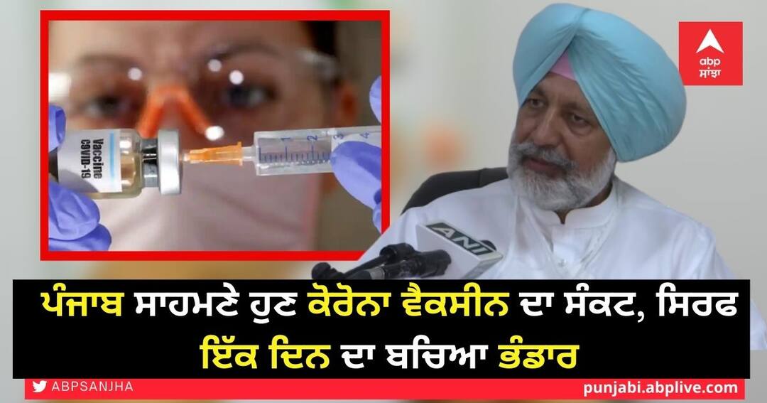 ਚੰਡੀਗੜ੍ਹ: ਕੋਰੋਨਾ ਵੈਕਸੀਨ ਨੂੰ ਲੈ ਕੇ ਪੰਜਾਬ ਦੇ ਹਾਲਾਤ ਚਿੰਤਾ ਵਾਲੇ ਹਨ। ਸੂਬੇ ਵਿੱਚ ਵੈਕਸੀਨ ਦਾ ਸਿਰਫ ਇੱਕ ਦਿਨ ਦਾ ਭੰਡਾਰ ਬਚਿਆ ਹੈ। ਇਹ ਜਾਣਕਾਰੀ ਸਿਹਤ ਤੇ ਪਰਿਵਾਰ ਭਲਾਈ ਮੰਤਰੀ ਬਲਬੀਰ ਸਿੰਘ ਸਿੱਧੂ ਨੇ ਦਿੱਤੀ ਹੈ। ਉਨ੍ਹਾਂ ਨੇ ਮੰਗਲਵਾਰ ਨੂੰ ਜ਼ਿਲ੍ਹਾ ਹਸਪਤਾਲ ਮੁਹਾਲੀ ਵਿੱਚ ਕੋਵਿਡ-19 ਟੀਕੇ ਦੀ ਦੂਜੀ ਖੁਰਾਕ ਲੈਣ ਮਗਰੋਂ ਦੱਸਿਆ ਕਿ ਪੰਜਾਬ ਸਰਕਾਰ ਕੇਂਦਰ ਵੱਲੋਂ ਟੀਕੇ ਦੀ ਸਪਲਾਈ ਦੀ ਘਾਟ ਕਾਰਨ ਰੋਜ਼ਾਨਾ 2 ਲੱਖ ਵਿਅਕਤੀਆਂ ਦੇ ਟੀਕਾਕਰਨ ਦੇ ਟੀਚੇ ਨੂੰ ਹਾਸਲ ਕਰਨ ਵਿੱਚ ਅਸਮਰਥ ਹੈ।
