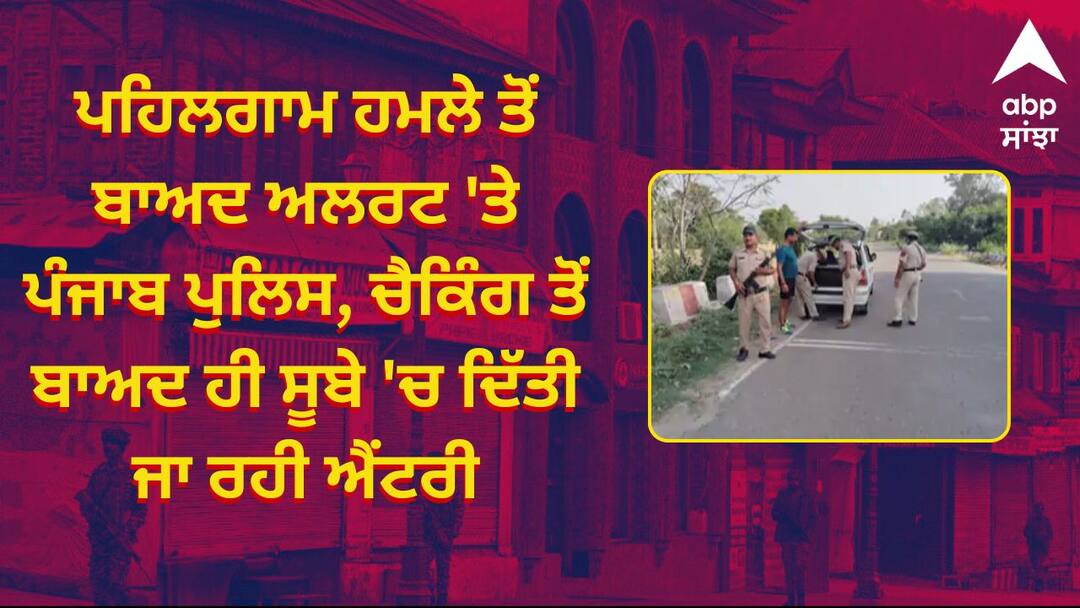 Pahalgam Attack: ਜੰਮੂ-ਕਸ਼ਮੀਰ ਦੇ ਪਹਿਲਗਾਮ ਵਿੱਚ ਹੋਏ ਅੱਤਵਾਦੀ ਹਮਲੇ ਤੋਂ ਬਾਅਦ ਪੰਜਾਬ ਪੁਲਿਸ ਨੇ ਜੰਮੂ ਨਾਲ ਲੱਗਦੇ ਪੰਜਾਬ ਦੇ ਇਲਾਕਿਆਂ ਵਿੱਚ ਸੁਰੱਖਿਆ ਤੇ ਜਾਂਚ ਵਧਾ ਦਿੱਤੀ ਹੈ। ਪਠਾਨਕੋਟ ਜ਼ਿਲ੍ਹੇ ਵਿੱਚ ਪੁਲਿਸ ਨੇ ਸਰਹੱਦੀ ਇਲਾਕਿਆਂ ਵਿੱਚ ਚੌਕਸੀ ਵਧਾ ਦਿੱਤੀ ਹੈ। ਇੱਥੇ ਜੰਮੂ ਡਿਵੀਜ਼ਨ ਵੱਲ ਜਾਣ ਵਾਲੇ ਸਾਰੇ ਦੂਜੇ ਰਸਤਿਆਂ ਨੂੰ ਸੀਲ ਕਰ ਦਿੱਤਾ ਗਿਆ ਹੈ।