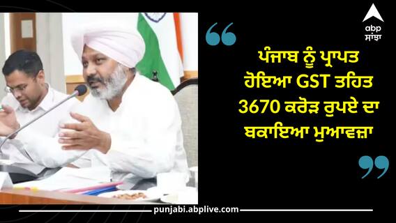 Punjab news: ਪੰਜਾਬ ਦੇ ਵਿੱਤ, ਆਬਕਾਰੀ ਅਤੇ ਕਰ ਮੰਤਰੀ ਐਡਵੋਕੇਟ ਹਰਪਾਲ ਸਿੰਘ ਚੀਮਾ ਨੇ ਅੱਜ ਇਥੇ ਦੱਸਿਆ ਕਿ ਜੁਲਾਈ, 2017 ਤੋਂ ਮਾਰਚ, 2022 ਦੀ ਮਿਆਦ ਲਈ ਵਸਤੂਆਂ ਅਤੇ ਸੇਵਾਵਾਂ ਕਰ (ਜੀ.ਐਸ.ਟੀ) ਦੇ ਅਧੀਨ ਬਕਾਇਆ ਮੁਆਵਜ਼ੇ ਵਜੋਂ ਪੰਜਾਬ ਨੂੰ ਭਾਰਤ ਸਰਕਾਰ ਤੋਂ 3,670.64 ਕਰੋੜ ਰੁਪਏ ਪ੍ਰਾਪਤ ਹੋਏ ਹਨ।