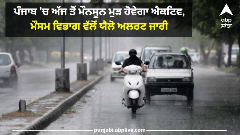 Punjab Weather : ਪੰਜਾਬ 'ਚ ਮੰਗਲਵਾਰ ਯਾਨੀ ਅੱਜ ਤੋਂ ਮਾਨਸੂਨ ਮੁੜ ਸਰਗਰਮ ਹੋ ਰਿਹਾ ਹੈ ਅਤੇ ਤਿੰਨ ਦਿਨ ਮੀਂਹ ਪਵੇਗਾ। ਇਸ ਦੇ ਮੱਦੇਨਜ਼ਰ ਮੌਸਮ ਵਿਭਾਗ ਵੱਲੋਂ ਸੂਬੇ ਦੇ 15 ਜ਼ਿਲ੍ਹਿਆਂ ਵਿੱਚ ਯੈਲੋ ਅਲਰਟ ਜਾਰੀ ਕੀਤਾ ਗਿਆ ਹੈ । ਭਾਰੀ ਮੀਂਹ ਦੀ ਚੇਤਾਵਨੀ ਦਿੱਤੀ ਗਈ ਹੈ । ਮੀਂਹ ਦੇ ਨਾਲ 40-50 ਕਿਲੋਮੀਟਰ ਦੀ ਰਫ਼ਤਾਰ ਨਾਲ ਚੱਲਣ ਵਾਲੀਆਂ ਹਵਾਵਾਂ ਨਾਲ ਦਿਨ ਅਤੇ ਰਾਤ ਦੇ ਤਾਪਮਾਨ ਵਿੱਚ ਵੀ ਗਿਰਾਵਟ ਆਵੇਗੀ।