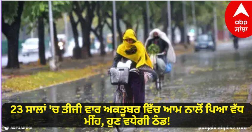 Punjab Weather Update: ਪਿਛਲੇ 23 ਸਾਲਾਂ ਵਿੱਚ ਤੀਜੀ ਵਾਰ ਅਕਤੂਬਰ ਵਿੱਚ ਪੰਜਾਬ ਵਿੱਚ ਆਮ ਨਾਲੋਂ ਵੱਧ ਮੀਂਹ ਦਰਜ ਕੀਤਾ ਗਿਆ ਹੈ। ਦਿਨ ਅਤੇ ਰਾਤ ਦੇ ਤਾਪਮਾਨ ਵਿੱਚ ਗਿਰਾਵਟ ਕਾਰਨ ਠੰਢ ਵਧ ਗਈ ਹੈ। ਇਸ ਤੋਂ ਪਹਿਲਾਂ ਸਾਲ 2004 ਵਿਚ ਅਤੇ ਫਿਰ 2021 ਵਿਚ ਅਕਤੂਬਰ ਮਹੀਨੇ ਵਿਚ ਜ਼ਿਆਦਾ ਬਾਰਿਸ਼ ਦਰਜ ਕੀਤੀ ਗਈ ਸੀ। ਮੌਸਮ ਵਿਭਾਗ ਦੇ ਚੰਡੀਗੜ੍ਹ ਕੇਂਦਰ ਦੇ ਡਾਇਰੈਕਟਰ ਮਨਮੋਹਨ ਸਿੰਘ ਅਨੁਸਾਰ ਪੱਛਮੀ ਗੜਬੜੀ ਦੇ ਪ੍ਰਭਾਵ ਕਾਰਨ ਪੰਜਾਬ ਦਾ ਮੌਸਮ ਬਦਲ ਗਿਆ ਹੈ। ਪਿਛਲੇ ਕੁਝ ਦਿਨਾਂ ਵਿੱਚ ਪੰਜਾਬ ਵਿੱਚ ਆਮ ਨਾਲੋਂ ਕਿਤੇ ਵੱਧ ਮੀਂਹ ਦਰਜ ਕੀਤਾ ਗਿਆ ਹੈ।