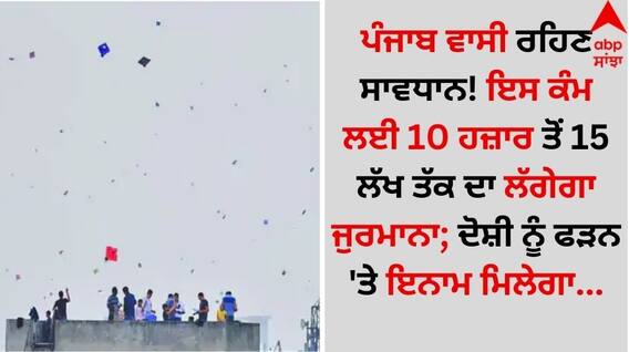 Punjab News: ਪੰਜਾਬ 'ਚ ਚਾਈਨਾ ਡੋਰ, ਸਿੰਥੈਟਿਕ ਮਟੀਰੀਅਲ ਅਤੇ ਮਾਂਜੇ ਤੋਂ ਬਣੀ ਡੋਰ 'ਤੇ ਸੂਬੇ ਵਿੱਚ ਪੂਰੀ ਤਰ੍ਹਾਂ ਪਾਬੰਦੀ ਲਗਾ ਦਿੱਤੀ ਗਈ ਹੈ। ਇਹ ਹੁਕਮ ਪੰਜਾਬ ਦੇ ਪ੍ਰਦੂਸ਼ਣ ਕੰਟਰੋਲ ਬੋਰਡ ਵੱਲੋਂ ਜਾਰੀ ਕੀਤੇ ਗਏ ਹਨ। ਇਸ ਸਬੰਧੀ ਪੰਜਾਬ ਪ੍ਰਦੂਸ਼ਣ ਕੰਟਰੋਲ ਬੋਰਡ ਵੱਲੋਂ ਸਜ਼ਾ ਦੀ ਵਿਵਸਥਾ ਵੀ ਕੀਤੀ ਗਈ ਹੈ।