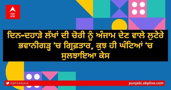 Punjab News: ਸੰਗਰੂਰ ਜ਼ਿਲ੍ਹੇ ਦੀ ਭਵਾਨੀਗੜ੍ਹ ਪੁਲਿਸ ਕੋਲ ਦਿਨ-ਦਹਾੜੇ ਛੇ ਲੱਖ ਤੋਂ ਜ਼ਿਆਦਾ ਦੀ ਲੁੱਟ ਦਾ ਮਾਮਲਾ ਦਰਜ ਕਰਵਾਇਆ ਗਿਆ ਜਿਸ ਨੂੰ ਗੰਭੀਰਤਾ ਨਾਲ ਲੈਂਦਿਆਂ ਪੁਲਿਸ ਨੇ ਤੁਰੰਤ ਮਾਮਲਾ ਦਰਜ ਕਰ ਇੰਕਵਾਇਰੀ ਸ਼ੁਰੂ ਕਰ ਦਿੱਤੀ ਤੇ ਲੁੱਟ ਦੇ ਕੁਝ ਹੀ ਘੰਟਿਆਂ ਬਾਅਦ ਲੁਟੇਰਿਆਂ ਨੂੰ ਆਪਣੀ ਗ੍ਰਿਫ਼ਤ 'ਚ ਲੈ ਲਿਆ।