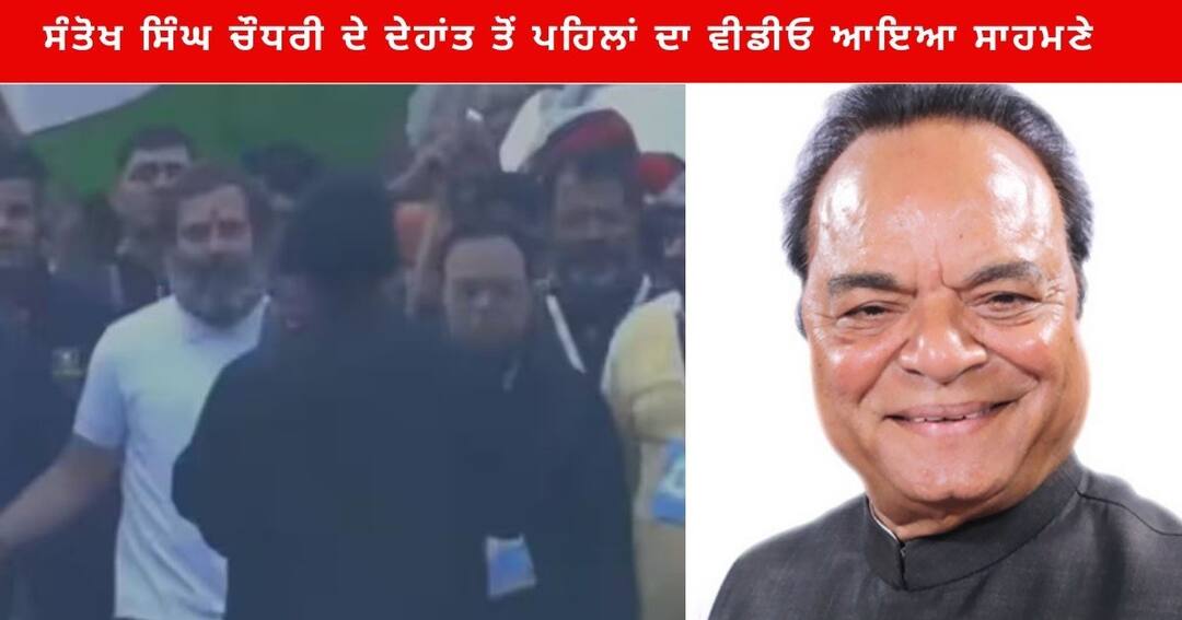 Santokh Singh Death : ਕਾਂਗਰਸ ਦੇ ਸੰਸਦ ਮੈਂਬਰ ਸੰਤੋਖ ਸਿੰਘ ਚੌਧਰੀ ਦੀ ਸ਼ਨੀਵਾਰ ਸਵੇਰੇ ਦਿਲ ਦਾ ਦੌਰਾ ਪੈਣ ਕਾਰਨ ਮੌਤ ਹੋ ਗਈ। ਜਿਸ ਸਮੇਂ ਉਨ੍ਹਾਂ ਨੂੰ ਦਿਲ ਦਾ ਦੌਰਾ ਪਿਆ, ਉਹ ਰਾਹੁਲ ਗਾਂਧੀ ਨਾਲ 'ਭਾਰਤ ਜੋੜੋ ਯਾਤਰਾ' 'ਚ ਚੱਲ ਰਹੇ ਸਨ। ਉਸ ਸਮੇਂ ਦੀ ਇੱਕ ਵੀਡੀਓ ਵੀ ਸਾਹਮਣੇ ਆਈ ਹੈ। ਵੀਡੀਓ 'ਚ ਦਿਖਾਈ ਦੇ ਰਿਹਾ ਹੈ ਕਿ ਸੰਤੋਖ ਸਿੰਘ ਰਾਹੁਲ ਗਾਂਧੀ ਦੇ ਬਿਲਕੁਲ ਨਾਲ ਚੱਲ ਰਹੇ ਹਨ। ਇਕ ਵਾਰ ਤਾਂ ਉਸ ਦੇ ਚਿਹਰੇ 'ਤੇ ਮੁਸਕਰਾਹਟ ਵੀ ਦਿਖਾਈ ਦਿੰਦੀ ਹੈ ਅਤੇ ਫਿਰ ਅਚਾਨਕ ਉਸ ਨੂੰ ਦਿਲ ਦਾ ਦੌਰਾ ਪੈ ਜਾਂਦਾ ਹੈ।
