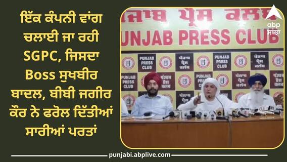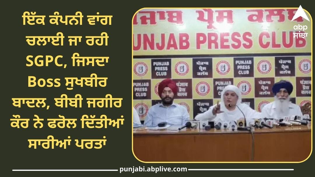 Punjab News: ਦੇਸ਼ ਦੀ ਸਭ ਤੋਂ ਵੱਡੀ ਖੇਤਰੀ ਪਾਰਟੀ ਸ਼੍ਰੋਮਣੀ ਅਕਾਲੀ ਦਲ ਦੇ ਬਾਗੀ ਧੜੇ ਨੇ ਸੀਨੀਅਰ ਆਗੂ ਬੀਬੀ ਜਗੀਰ ਕੌਰ ਨੂੰ ਸ਼੍ਰੋਮਣੀ ਕਮੇਟੀ ਚੋਣਾਂ ਵਿੱਚ ਆਪਣਾ ਉਮੀਦਵਾਰ ਬਣਾਇਆ ਹੈ। ਜਲੰਧਰ 'ਚ ਬੀਬੀ ਜਗੀਰ ਕੌਰ ਨੇ ਸ਼੍ਰੋਮਣੀ ਕਮੇਟੀ ਚੋਣਾਂ ਸਬੰਧੀ ਚੋਣ ਪ੍ਰਕਿਰਿਆ ਅਤੇ ਹੋਰ ਮੁੱਦਿਆਂ 'ਤੇ ਚਰਚਾ ਕੀਤੀ ਅਤੇ ਸ਼੍ਰੋਮਣੀ ਅਕਾਲੀ ਦਲ 'ਤੇ ਗੰਭੀਰ ਦੋਸ਼ ਲਗਾਏ।