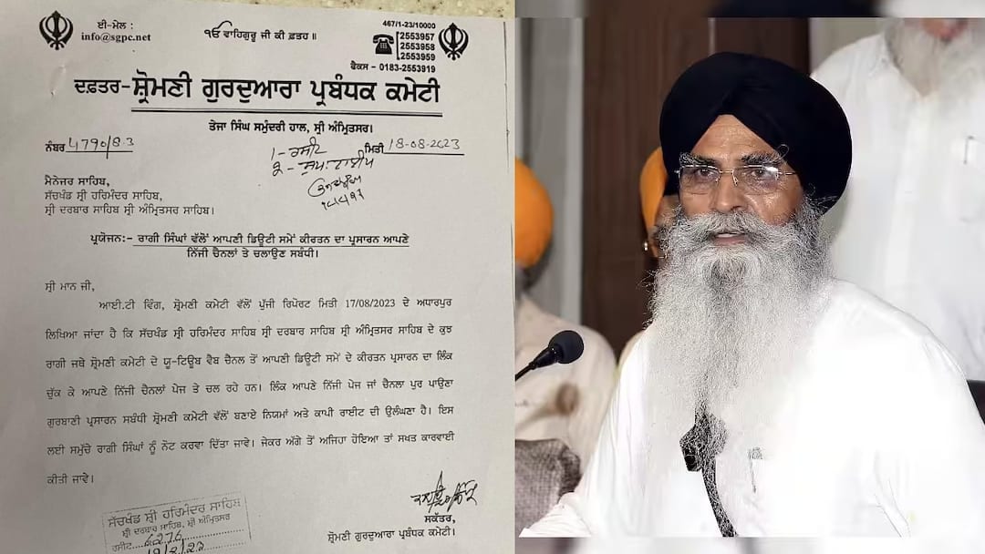 ''ਆਈ.ਟੀ ਵਿੰਗ, ਸ਼੍ਰੋਮਣੀ ਕਮੇਟੀ ਵੱਲੋਂ ਪੁੱਜੀ ਰਿਪੋਰਟ ਮਿਤੀ 17/08/2023 ਦੇ ਅਧਾਰਪੁਰ ਲਿਖਿਆ ਜਾਂਦਾ ਹੈ ਕਿ ਸੱਚਖੰਡ ਸ੍ਰੀ ਹਰਿਮੰਦਰ ਸਾਹਿਬ ਸ੍ਰੀ ਦਰਬਾਰ ਸਾਹਿਬ ਸ੍ਰੀ ਅੰਮ੍ਰਿਤਸਰ ਸਾਹਿਬ ਦੇ ਕੁਝ ਰਾਗੀ ਜਥੇ ਸ਼੍ਰੋਮਣੀ ਕਮੇਟੀ ਦੇ ਯੂ-ਟਿਊਬ ਵੈਬ ਚੈਨਲ ਤੋਂ ਆਪਣੀ ਡਿਊਟੀ ਸਮੇਂ ਦੇ ਕੀਰਤਨ ਪ੍ਰਸਾਰਨ ਦਾ ਲਿੰਕ ਚੁੱਕ ਕੇ ਆਪਣੇ ਨਿੱਜੀ ਚੈਨਲਾਂ ਪੇਜ 'ਤੇ ਚਲਾ ਰਹੇ ਹਨ। ਲਿੰਕ ਆਪਣੇ ਨਿੱਜੀ ਪੇਜ ਜਾਂ ਚੈਨਲਾਂ ਪਰ ਪਾਉਣਾ ਗੁਰਬਾਣੀ ਪ੍ਰਸਾਰਨ ਸਬੰਧੀ ਸ਼੍ਰੋਮਣੀ ਕਮੇਟੀ ਵੱਲੋਂ ਬਣਾਏ ਨਿਯਮਾਂ ਅਤੇ ਕਾਪੀ ਰਾਈਟ ਦੀ ਉਲੰਘਣਾ ਹੈ। ਇਸ ਲਈ ਸਮੁੱਚੇ ਰਾਗੀ ਸਿੰਘਾਂ ਨੂੰ ਨੋਟ ਕਰਵਾ ਦਿੱਤਾ ਜਾਵੇ। ਜੇਕਰ ਅੱਗੇ ਤੋਂ ਅਜਿਹਾ ਹੋਇਆ ਤਾਂ ਸਖਤ ਕਾਰਵਾਈ ਕੀਤੀ ਜਾਵੇ।''