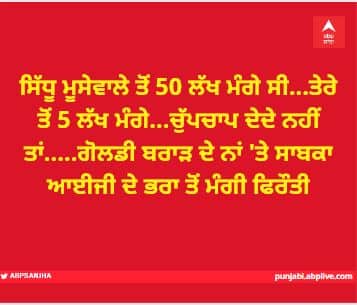 Moose Wala Murder Case: ਪੰਜਾਬੀ ਸਿੱਧੂ ਮੂਸੇਵਾਲਾ ਕੇਸ 'ਚ ABP ਨਿਊਜ਼ ਨੇ ਵੱਡਾ ਖੁਲਾਸਾ ਕੀਤਾ ਹੈ। ABP News ਕੈਨੇਡਾ 'ਚ ਬੈਠ ਕੇ ਪੰਜਾਬ 'ਚ ਸਿੱਧੂ ਮੂਸੇਵਾਲਾ ਦੇ ਕਤਲ ਨੂੰ ਅੰਜਾਮ ਦੇਣ ਵਾਲੇ ਗੋਲਡੀ ਬਰਾੜ ਦੇ ਅਪਰਾਧਾਂ ਦੀ ਲਿਸਟ ਲੈ ਕੇ ਆਇਆ ਹੈ। ਪੰਜਾਬ ਦੇ ਮਾਨਸਾ ਵਿੱਚ 30 ਤੋਂ ਵੱਧ ਗੋਲੀਆਂ ਚਲਾ ਕੇ ਗਾਇਕ ਤੇ ਕਾਂਗਰਸੀ ਆਗੂ ਸਿੱਧੂ ਮੂਸੇਵਾਲਾ ਦੇ ਕਤਲ ਨੂੰ ਅੰਜਾਮ ਦੇਣ ਵਾਲੇ ਗੋਲਡੀ ਬਰਾੜ ਦਾ ਪੂਰਾ ਨਾਂ ਸਤਵਿੰਦਰਜੀਤ ਸਿੰਘ ਉਰਫ਼ ਗੋਲਡੀ ਬਰਾੜ ਹੈ।