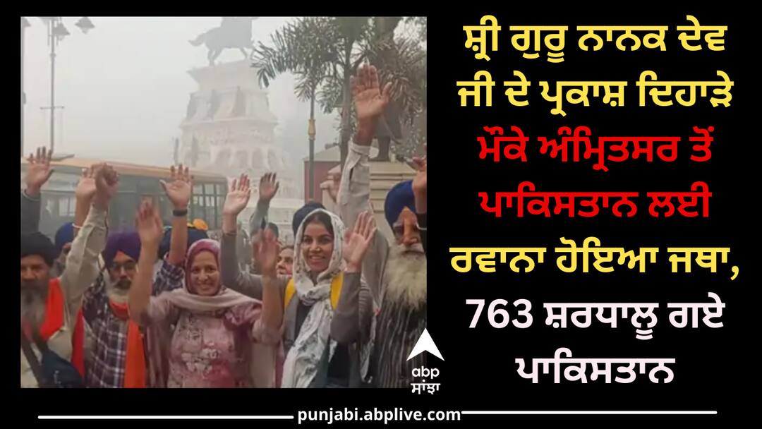 Punjab News: ਅੱਜ ਸ੍ਰੀ ਗੁਰੂ ਨਾਨਕ ਦੇਵ ਜੀ ਦੇ 555ਵੇਂ ਪ੍ਰਕਾਸ਼ ਪੁਰਬ ਨੂੰ ਮਨਾਉਣ ਲਈ ਸ਼ਰਧਾਲੂਆਂ ਦਾ ਇੱਕ ਜਥਾ ਜ਼ੀਰੋ ਵਿਜ਼ਿਬਲਿਟੀ ਦੇ ਵਿਚਕਾਰ ਪਾਕਿਸਤਾਨ ਲਈ ਰਵਾਨਾ ਹੋਇਆ। ਇਹ ਜਥਾ 10 ਦਿਨਾਂ ਬਾਅਦ 23 ਨਵੰਬਰ ਨੂੰ ਭਾਰਤ ਪਰਤੇਗਾ। ਸਤਨਾਮ ਵਾਹਿਗੁਰੂ ਦੇ ਜਾਪ ਨਾਲ 763 ਸ਼ਰਧਾਲੂ ਰਵਾਨਾ ਹੋਏ।