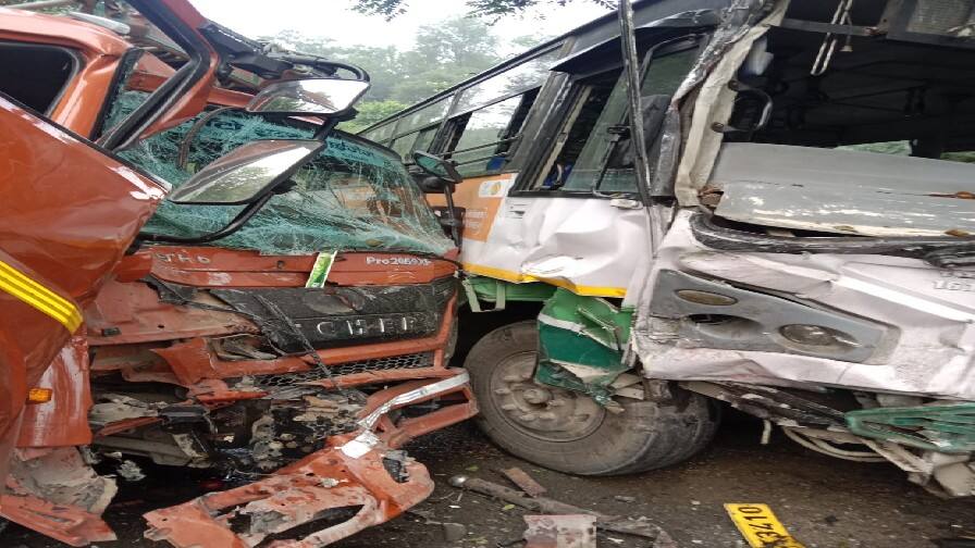 ਚੰਡੀਗੜ੍ਹ: ਚੰਡੀਗੜ੍ਹ-ਮਨਾਲੀ ਨੈਸ਼ਨਲ ਹਾਈਵੇਅ ’ਤੇ ਗੰਭਰ ਪੁਲ ਨੇੜੇ ਐੱਚਆਰਟੀਸੀ ਬੱਸ ਅਤੇ ਟਰੱਕ ਵਿਚਾਲੇ ਜ਼ਬਰਦਸਤ ਟੱਕਰ ਹੋ ਗਈ। ਇਸ ਟੱਕਰ 'ਚ ਕੁਝ ਯਾਤਰੀਆਂ ਦੇ ਜ਼ਖਮੀ ਹੋਣ ਦੀ ਖ਼ਬਰ ਸਾਹਮਣੇ ਆਈ ਹੈ। ਐਚਆਰਟੀਸੀ ਬੱਸ ਦਿੱਲੀ ਤੋਂ ਮਨਾਲੀ ਜਾ ਰਹੀ ਸੀ। ਬਿਲਾਸਪੁਰ ਦੇ ਜਾਮਲੀ ਅਤੇ ਗੰਭਰ ਪੁਲ ਨੇੜੇ ਬੱਸ ਅਤੇ ਟਰੱਕ ਦੀ ਜ਼ਬਰਦਸਤ ਟੱਕਰ ਹੋ ਗਈ। ਜ਼ਖਮੀਆਂ ਨੂੰ ਇਲਾਜ ਲਈ ਨਜ਼ਦੀਕ ਦੇ ਹਸਪਤਾਲ ਭੇਜਿਆ ਜਾ ਰਿਹਾ ਹੈ। ਹਾਦਸੇ ਤੋਂ ਬਾਅਦ ਕੌਮੀ ਮਾਰਗ ’ਤੇ ਲੰਮਾ ਜਾਮ ਲੱਗ ਗਿਆ। ਪੁਲਿਸ ਮੌਕੇ 'ਤੇ ਪਹੁੰਚ ਕੇ ਅਗਲੇਰੀ ਕਾਰਵਾਈ ਕਰ ਰਹੀ ਹੈ।