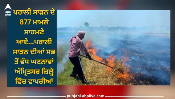 ਪਰਾਲੀ ਸਾੜਨ ਦੀਆਂ ਸਭ ਤੋਂ ਵੱਧ ਘਟਨਾਵਾਂ ਅੰਮ੍ਰਿਤਸਰ ਜ਼ਿਲ੍ਹੇ ਵਿੱਚ ਵਾਪਰੀਆਂਤੁਹਾਨੂੰ ਦੱਸ ਦੇਈਏ ਕਿ ਪੰਜਾਬ ਸਰਕਾਰ ਨੇ ਪਰਾਲੀ ਸਾੜਨ 'ਤੇ ਪਾਬੰਦੀ ਲਗਾਉਣ ਲਈ ਸੀਆਰਪੀਸੀ ਦੀ ਧਾਰਾ 144 ਲਗਾਈ ਹੋਈ ਹੈ, ਜਿਸ ਦੇ ਬਾਵਜੂਦ ਪਰਾਲੀ ਸਾੜਨ ਦੀਆਂ ਘਟਨਾਵਾਂ ਸਾਹਮਣੇ ਆ ਰਹੀਆਂ ਹਨ। ਹਾਲ ਹੀ ਵਿੱਚ ਅੰਮ੍ਰਿਤਸਰ ਜ਼ਿਲ੍ਹੇ ਵਿੱਚ ਪਰਾਲੀ ਸਾੜਨ ਸਬੰਧੀ ਕੋਈ ਐਫਆਈਆਰ ਦਰਜ ਨਹੀਂ ਕੀਤੀ ਗਈ, ਜਦੋਂ ਕਿ ਜ਼ਿਲ੍ਹੇ ਵਿੱਚ ਪਰਾਲੀ ਸਾੜਨ ਦੀਆਂ 381 ਘਟਨਾਵਾਂ ਵਾਪਰੀਆਂ ਹਨ। ਸੂਬੇ ਵਿੱਚ ਖੇਤਾਂ ਨੂੰ ਅੱਗ ਲਾਉਣ ਦੀਆਂ 561 ਘਟਨਾਵਾਂ ਵਿੱਚੋਂ 68 ਫੀਸਦੀ ਇਕੱਲੇ ਅੰਮ੍ਰਿਤਸਰ ਦੀਆਂ ਹਨ।ਇੰਨਾ ਹੀ ਨਹੀਂ ਫਾਜ਼ਿਲਕਾ, ਜਲੰਧਰ, ਸੰਗਰੂਰ, ਪਟਿਆਲਾ, ਰੋਪੜ ਅਤੇ ਹੋਰ ਜ਼ਿਲ੍ਹਿਆਂ ਵਿੱਚ ਪਿਛਲੇ 3-4 ਦਿਨਾਂ ਵਿੱਚ ਕੋਈ ਐਫਆਈਆਰ ਦਰਜ ਨਹੀਂ ਹੋਈ।