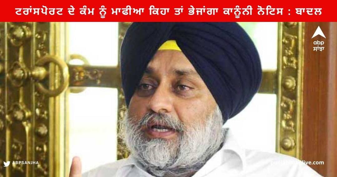 Punjab News : ਸ਼੍ਰੋਮਣੀ ਅਕਾਲੀ ਦਲ ਦੇ ਪ੍ਰਧਾਨ ਸੁਖਬੀਰ ਬਾਦਲ ਨੇ ਪ੍ਰਾਈਵੇਟ ਬੱਸ ਰੋਕਣ 'ਤੇ ਵੱਡਾ ਬਿਆਨ ਦਿੱਤਾ ਹੈ। ਸੁਖਬੀਰ ਬਾਦਲ ਨੇ ਕਿਹਾ ਕਿ ਇਹ ਜੋ ਟਰਾਂਸਪੋਰਟ ਨੂੰ ਮਾਫੀਆ ਕਹਿੰਦੇ ਹਨ , ਉਨ੍ਹਾਂ ਨੂੰ ਸ਼ਰਮ ਆਉਣੀ ਚਾਹੀਦੀ ਹੈ। ਮੈਂ ਟਰਾਂਸਪੋਰਟ ਮੰਤਰੀ ਨੂੰ ਕਾਨੂੰਨੀ ਨੋਟਿਸ ਦੇਣ ਜਾ ਰਿਹਾ ਹਾਂ। ਜੇਕਰ ਅੱਜ ਤੋਂ ਬਾਅਦ ਮੀਡੀਆ ਨੇ ਵੀ ਟਰਾਂਸਪੋਰਟ ਦੇ ਕੰਮ ਨੂੰ ਮਾਫੀਆ ਕਿਹਾ ਤਾਂ ਉਨ੍ਹਾਂ ਨੂੰ ਵੀ ਕਾਨੂੰਨੀ ਨੋਟਿਸ ਭੇਜਿਆ ਜਾਵੇਗਾ। ਸੁਖਬੀਰ ਬਾਦਲ ਨੇ ਕਿਹਾ ਕਿ ਸਾਡੀ ਟਰਾਂਸਪੋਰਟ ਆਜ਼ਾਦੀ ਤੋਂ ਬਾਅਦ ਤੋਂ ਚੱਲ ਰਹੀ ਹੈ। ਅਸੀਂ ਕੋਈ ਗੈਰ-ਕਾਨੂੰਨੀ ਕੰਮ ਨਹੀਂ ਕਰ ਰਹੇ ਹਾਂ।
