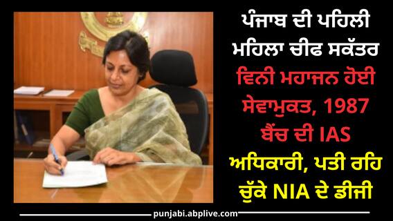 Punjab News: ਪੰਜਾਬ ਦੀ ਪਹਿਲੀ ਮਹਿਲਾ ਮੁੱਖ ਸਕੱਤਰ ਅਤੇ ਸੀਨੀਅਰ ਆਈਏਐਸ ਵਿੰਨੀ ਮਹਾਜਨ ਸੇਵਾਮੁਕਤ ਹੋ ਗਈ ਹੈ। ਫਿਲਹਾਲ ਉਹ ਕੇਂਦਰ ਵਿੱਚ ਆਪਣੀਆਂ ਸੇਵਾਵਾਂ ਦੇ ਰਹੇ ਸਨ। ਉਹ ਵੀਰਵਾਰ ਨੂੰ ਸੇਵਾਮੁਕਤ ਹੋ ਗਈ ਹਨ। ਸ਼ੁੱਕਰਵਾਰ ਸਵੇਰੇ ਉਨ੍ਹਾਂ ਨੇ ਖੁਦ ਆਪਣੇ ਸੋਸ਼ਲ ਮੀਡੀਆ ਅਕਾਊਂਟ 'ਤੇ ਪੋਸਟ ਕਰਕੇ ਇਹ ਜਾਣਕਾਰੀ ਦਿੱਤੀ।
