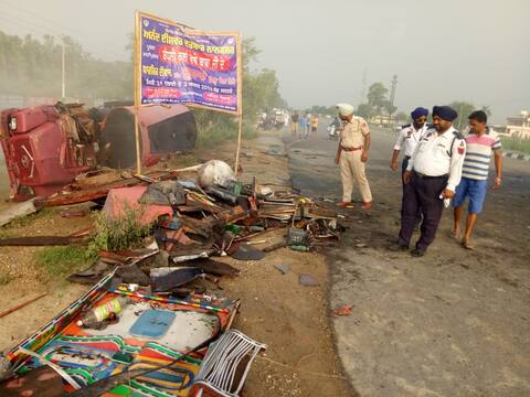 ਤੇਜ਼ਾਬ ਨਾਲ ਭਰਿਆ ਟੈਂਕਰ ਪਲਟਿਆ, 2 ਪਸ਼ੂਆਂ ਦੀ ਮੌਤ