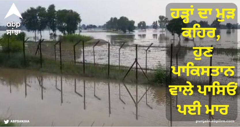Flood in Punjab: ਫਾਜ਼ਿਲਕਾ ਦੇ ਭਾਰਤ-ਪਾਕਿਸਤਾਨ ਸਰਹੱਦੀ ਖੇਤਰ 'ਚ ਇੱਕ ਵਾਰ ਫਿਰ ਸਤਲੁਜ ਦਰਿਆ 'ਚ ਪਾਣੀ ਦਾ ਪੱਧਰ ਵਧਣਾ ਸ਼ੁਰੂ ਹੋ ਗਿਆ ਹੈ। ਇਸ ਕਾਰਨ ਇੱਕ ਤੋਂ ਬਾਅਦ ਇੱਕ ਪਿੰਡ ਪਾਣੀ ਦੀ ਲਪੇਟ 'ਚ ਆ ਰਹੇ ਹਨ। ਹੁਣ ਸਥਿਤੀ ਇਹ ਬਣ ਗਈ ਹੈ ਕਿ ਪਿੱਛੇ ਤੋਂ ਵੀ ਪਾਣੀ ਛੱਡਿਆ ਜਾ ਰਿਹਾ ਹੈ ਤੇ ਪਾਕਿਸਤਾਨ ਦਾ ਪਾਣੀ ਵੀ ਓਵਰਫਲੋ ਹੋ ਕੇ ਫਸਲਾਂ 'ਚ ਦਾਖਲ ਹੋ ਰਿਹਾ ਹੈ।