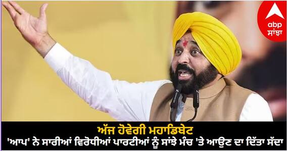 Punjab Open Debate News: ਪੰਜਾਬ ਸਰਕਾਰ ਨੇ ਅੱਜ ਹੋਣ ਵਾਲੀ ਮਹਾਡਿਬੇਟ ਨੂੰ ਲੈ ਕੇ ਬੀਤੇ ਦਿਨ ਪੋਸਟਰ ਜਾਰੀ ਕੀਤਾ ਸੀ। ਜਿਸ ਨੂੰ ਆਮ ਆਦਮੀ ਪਾਰਟੀ ਪੰਜਾਬ ਨੇ ਅਪਣੇ ਟਵਿੱਟਰ ਹੈਂਡਲ (ਐਕਸ) 'ਤੇ ਸ਼ੇਅਰ ਕੀਤਾ ਸੀ।