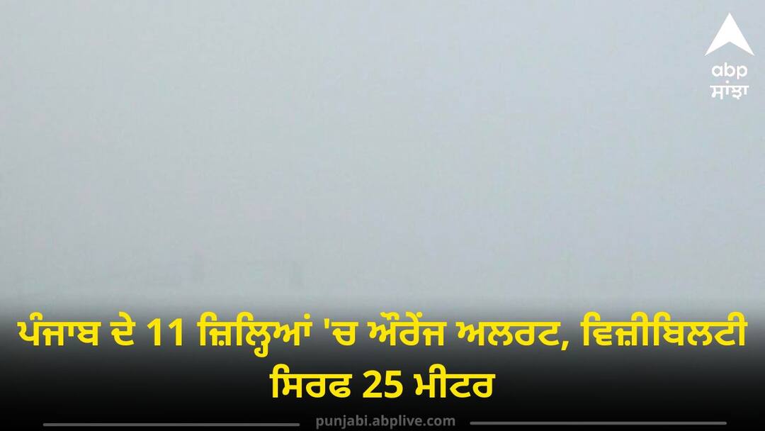 ਉਧਰ, ਧੁੰਦ ਕਾਰਨ ਮੌਸਮ ਵਿਭਾਗ ਨੇ ਪੰਜਾਬ ਦੇ 11 ਜ਼ਿਲ੍ਹਿਆਂ ਵਿੱਚ ਔਰੇਂਜ ਅਲਰਟ ਜਾਰੀ ਕੀਤਾ ਹੈ। ਮਾਝੇ ਦੇ ਪਠਾਨਕੋਟ, ਗੁਰਦਾਸਪੁਰ, ਅੰਮ੍ਰਿਤਸਰ ਤੇ ਤਰਨ ਤਾਰਨ ਤੋਂ ਇਲਾਵਾ ਦੁਆਬੇ ਦੇ ਹੁਸ਼ਿਆਰਪੁਰ, ਨਵਾਂ ਸ਼ਹਿਰ, ਕਪੂਰਥਲਾ, ਜਲੰਧਰ ਵਿੱਚ ਔਰੇਂਜ ਅਲਰਟ ਜਾਰੀ ਕੀਤਾ ਗਿਆ ਹੈ। ਮਾਲਵੇ ਦੇ ਲੁਧਿਆਣਾ, ਫਤਿਹਗੜ੍ਹ ਸਾਹਿਬ ਤੇ ਪਟਿਆਲਾ ਵਿੱਚ ਔਰੇਂਜ ਅਲਰਟ ਦਿੱਤਾ ਗਿਆ ਹੈ।