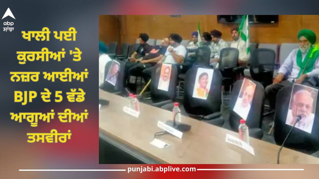 ਕਿਸਾਨਾਂ ਨੇ ਬੀਜੇਪੀ ਦੇ 5 ਵੱਡੇ ਨੇਤਾਵਾਂ ਦੀਆਂ ਕੁਰਸੀਆਂ ਲਗਾ ਦਿੱਤੀਆਂ ਹਨ। ਜਿਸ 'ਤੇ ਪ੍ਰਧਾਨ ਮੰਤਰੀ ਨਰਿੰਦਰ ਮੋਦੀ, ਗ੍ਰਹਿ ਮੰਤਰੀ ਅਮਿਤ ਸ਼ਾਹ, ਖੇਤੀਬਾੜੀ ਮੰਤਰੀ ਅਰਜੁਨ ਮੁੰਡਾ, ਭਾਜਪਾ ਦੇ ਰਾਸ਼ਟਰੀ ਪ੍ਰਧਾਨ ਅਤੇ ਸੂਬਾ ਪ੍ਰਧਾਨ ਜਾਖੜ ਦੇ ਨਾਂ ਲਿਖੇ ਹੋਏ ਹਨ। ਕਿਸਾਨ ਆਗੂਆਂ ਵੱਲੋਂ ਦੁਪਹਿਰ 3 ਵਜੇ ਤੱਕ ਭਾਜਪਾ ਆਗੂਆਂ ਦਾ ਇੰਤਜ਼ਾਰ ਕੀਤਾ ਗਿਆ, ਪਰ ਕੋਈ ਨਹੀਂ ਪਹੁੰਚਿਆ। ਹੁਣ ਕਿਸਾਨ ਆਪਣੀ ਅਗਲੀ ਰਣਨੀਤੀ ਦਾ ਐਲਾਨ ਕਰਨਗੇ।
