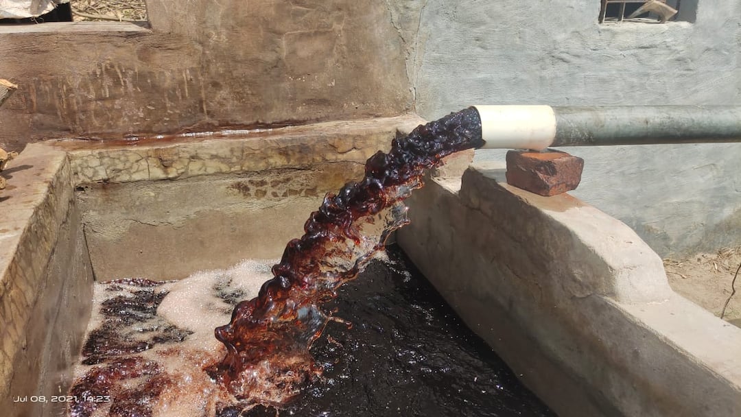 ਏਬੀਪੀ ਦੀ ਟੀਮ ਨੇ ਮੌਕੇ 'ਤੇ ਪਹੁੰਚ ਵੇਖਿਆ ਕਿ ਧਰਤੀ ਹੇਠੋਂ ਜੋ ਪਾਣੀ ਆ ਰਿਹਾ ਸੀ ਉਹ ਕਿਸੇ ਗੰਦੇ ਨਾਲੇ ਦੇ ਪਾਣੀ ਨਾਲੋਂ ਜ਼ਹਿਰੀਲਾ ਅਤੇ ਗੰਦਾ ਸੀ। ਜੋ ਕਿ ਕਿਸਾਨ ਦੇ ਅਨੁਸਾਰ ਹੈ ਪਿਛਲੇ ਕਈ ਸਾਲਾਂ ਤੋਂ ਖੇਤਾਂ ਚੋਂ ਨਿਕਲ ਰਿਹਾ ਸੀ। ਇਸ ਬਾਰੇ ਅਸੀਂ ਇੱਕ ਸਾਬਕਾ ਫ਼ੌਜੀ ਅਤੇ ਕਿਸਾਨ ਕੁਲਵਿੰਦਰ ਸਿੰਘ ਨਾਲ ਗੱਲ ਕੀਤੀ ਜੋ ਨੇੜਲੇ ਖੇਤ ਵਿਚ ਕੰਮ ਕਰਦਾ ਹੈ ਤਾਂ ਉਸ ਦੀ ਮੋਟਰ 'ਤੇ ਵੀ ਅਸੀਂ ਲਾਲ ਰੰਗ ਦਾ ਪਾਣੀ ਦੇਖਿਆ। ਇਸ ਦੌਰਾਨ ਖੇਤਾਂ 'ਚ ਜਿਸ ਪਾਸੇ ਵੀ ਨਜ਼ਰ ਗਈ ਲਾਲ ਰੰਗ ਹੀ ਨਜ਼ਰ ਆਇਆ।