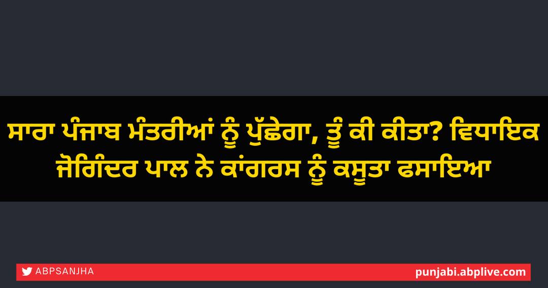 ਸਾਰਾ ਪੰਜਾਬ ਮੰਤਰੀਆਂ ਨੂੰ ਪੁੱਛੇਗਾ, ਤੂੰ ਕੀ ਕੀਤਾ? ਵਿਧਾਇਕ ਜੋਗਿੰਦਰ ਪਾਲ ਨੇ ਕਾਂਗਰਸ ਨੂੰ ਕਸੂਤਾ ਫਸਾਇਆ
