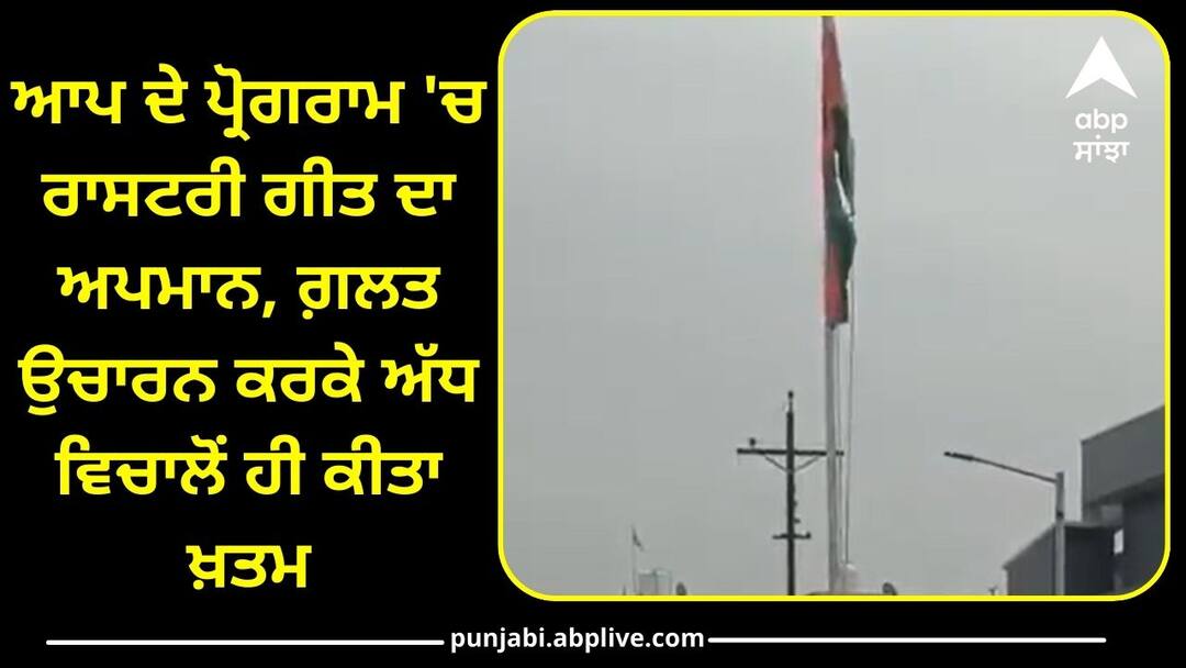 Punjab News: ਆਜ਼ਾਦੀ ਦਿਹਾੜੇ 'ਤੇ ਗੁਰਦਾਸਪੁਰ ਜ਼ਿਲ੍ਹੇ ਦੇ ਕਸਬਾ ਦੀਨਾਨਗਰ 'ਚ ਆਮ ਆਦਮੀ ਪਾਰਟੀ ਵੱਲੋਂ ਕਰਵਾਏ ਗਏ ਪ੍ਰੋਗਰਾਮ 'ਚ ਇੱਕ ਵਰਕਰ ਨੇ ਗ਼ਲਤ ਅਤੇ ਅਧੂਰੇ ਢੰਗ ਨਾਲ ਰਾਸ਼ਟਰੀ ਗੀਤ ਦਾ ਉਚਾਰਨ ਕੀਤਾ। ਜੋ ਕਿ ਚਰਚਾ ਦਾ ਵਿਸ਼ਾ ਬਣ ਗਿਆ ਹੈ। ਆਮ ਆਦਮੀ ਪਾਰਟੀ ਵੱਲੋਂ ਦੀਨਾਨਗਰ ਦੇ ਮਹਾਰਾਜਾ ਰਣਜੀਤ ਸਿੰਘ ਪਾਰਕ ਵਿਖੇ ਦੇਸ਼ ਦੇ 78ਵੇਂ ਆਜ਼ਾਦੀ ਦਿਵਸ ਮੌਕੇ ਜ਼ਿਲ੍ਹਾ ਗੁਰਦਾਸਪੁਰ ਸ਼ਹਿਰੀ ਪ੍ਰਧਾਨ ਤੇ ਦੀਨਾਨਗਰ ਹਲਕਾ ਇੰਚਾਰਜ ਸ਼ਮਸ਼ੇਰ ਸਿੰਘ ਵੱਲੋਂ ਰਾਸ਼ਟਰੀ ਝੰਡਾ ਲਹਿਰਾਉਣ ਦਾ ਪ੍ਰੋਗਰਾਮ ਕਰਵਾਇਆ ਗਿਆ।