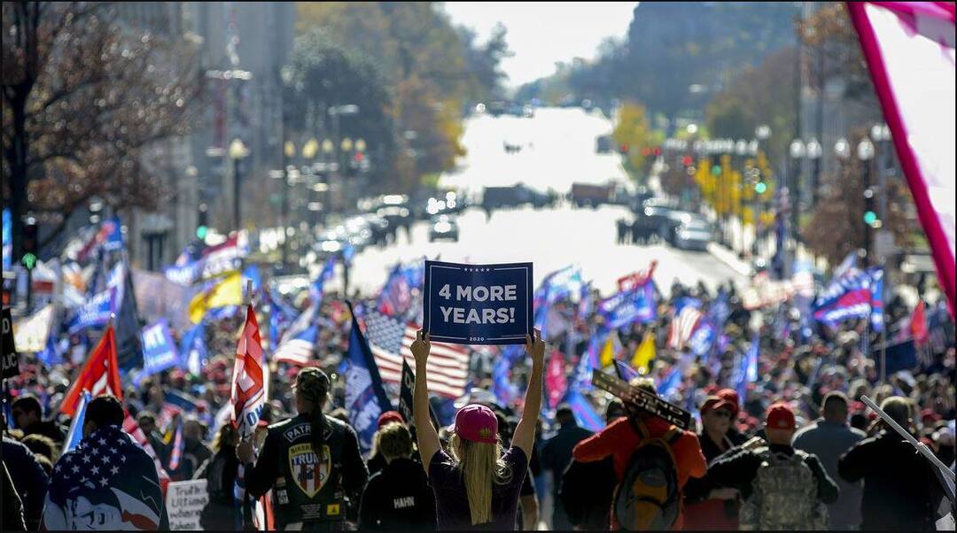 ਵਾਸ਼ਿੰਗਟਨ: ਅਮਰੀਕਾ ਦੇ ਰਾਸ਼ਟਰਪਤੀ ਡੋਨਾਲਡ ਟਰੰਪ ਦੇ ਚੋਣਾਂ ਵਿੱਚ ਗੜਬੜ ਹੋਣ ਦੇ ਦਾਅਵਿਆਂ ਨੂੰ ਸਮਰਥਨ ਦੇਣ ਦੇ ਹੱਕ ਵਿੱਚ ਹਜ਼ਾਰਾਂ ਦੀ ਗਿਣਤੀ ਵਿੱਚ ਲੋਕ ਵਾਸ਼ਿੰਗਟਨ ਦੀਆਂ ਸੜਕਾਂ 'ਤੇ ਉੱਤਰ ਆਏ ਤੇ ਇਸ ਦੌਰਾਨ ਹਿੰਸਾ ਵੀ ਭੜਕ ਉੱਠੀ। ਇਸ ਦ੍ਰਿਸ਼ ਨੇ ਬਿਹਾਰ ਚੋਣਾਂ ਯਾਦ ਕਰਵਾ ਦਿੱਤੀਆਂ।