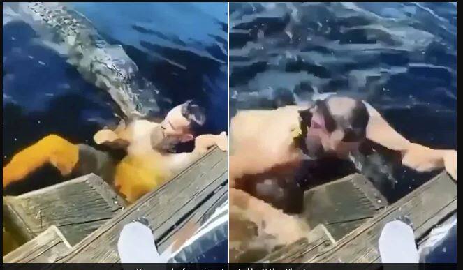 ਇਕ ਆਦਮੀ ਨਦੀ 'ਚ ਤੈਰਨ ਲਈ ਉਤਰਿਆ ਹੀ ਸੀ ਕਿ ਇਕ ਮਗਰਮੱਛ ਉਸ ਦੇ ਨੇੜੇ ਆਇਆ। ਇਸ ਤੋਂ ਬਾਅਦ ਮਗਰਮੱਛ ਨੇ ਉਸ ਵਿਅਕਤੀ ਨੂੰ ਮੂੰਹ ਖੋਲ੍ਹ ਕੇ ਖਾਣ ਦੀ ਕੋਸ਼ਿਸ਼ ਕੀਤੀ। ਜਿਵੇਂ ਹੀ ਮਗਰਮੱਛ ਆਪਣਾ ਮੂੰਹ ਖੋਲ੍ਹ ਕੇ ਵਿਅਕਤੀ ਵੱਲ ਆਇਆ ਤਾਂ ਉਹ ਆਦਮੀ ਆਪਣੀ ਜਾਨ ਬਚਾ ਕੇ ਉੱਥੋਂ ਫਰਾਰ ਹੋ ਗਿਆ। ਇਸ ਘਟਨਾ ਦੀ ਵੀਡੀਓ ਸੋਸ਼ਲ ਮੀਡੀਆ 'ਤੇ ਜ਼ਬਰਦਸਤ ਵਾਇਰਲ ਹੋ ਰਹੀ ਹੈ।