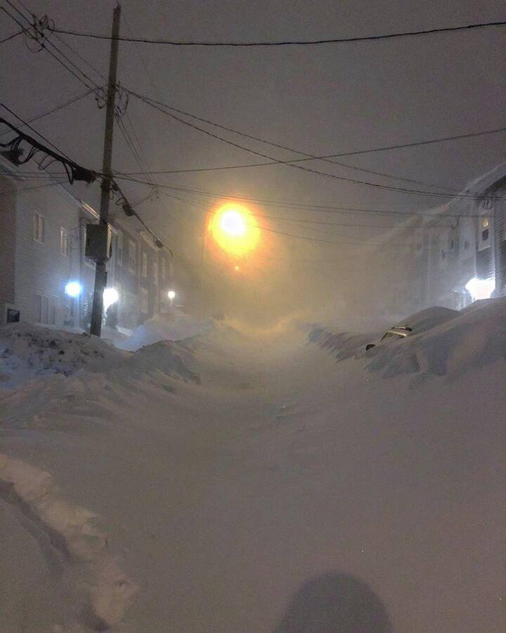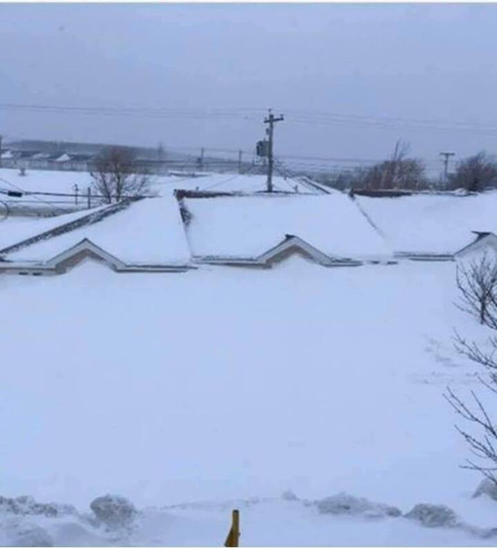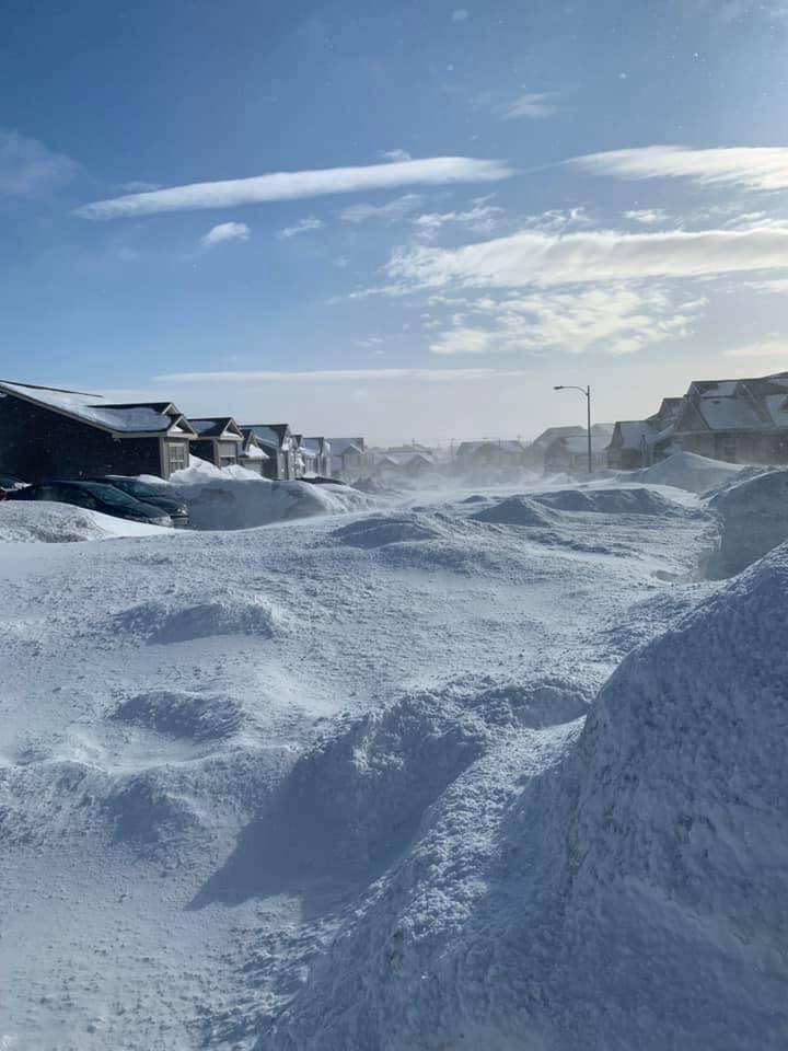 ਤੇਜ਼ ਹਵਾ ਕਾਰਨ ਕਾਰਾਂ ਸਨੋਅ ਹੇਠਾਂ ਦੱਬ ਗਈਆਂ। ਜਦਕਿ ਵਾਈਟ-ਆਊਟ ਹੋਣ ਕਾਰਨ ਸੜਕਾਂ ਖ਼ਤਰੇ ਤੋਂ ਖ਼ਾਲੀ ਨਜ਼ਰ ਨਹੀਂ ਆ ਰਹੀਆਂ।