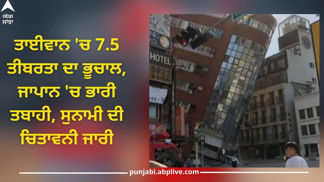 7.5 magnitude earthquake in Taiwan: ਤਾਇਵਾਨ ਵਿੱਚ ਅੱਜ ਯਾਨੀਕਿ 3 ਅਪ੍ਰੈਲ ਦੀ ਸਵੇਰ ਇੱਕ ਸ਼ਕਤੀਸ਼ਾਲੀ ਭੂਚਾਲ ਆਇਆ, ਜਿਸ ਕਾਰਨ ਪੂਰਾ ਟਾਪੂ ਹਿੱਲ ਗਿਆ ਅਤੇ ਇਮਾਰਤਾਂ ਢਹਿ ਗਈਆਂ। ਜਾਪਾਨ ਨੇ ਦੱਖਣੀ ਟਾਪੂ ਸਮੂਹ ਓਕੀਨਾਵਾ ਲਈ ਸੁਨਾਮੀ ਦੀ ਚਿਤਾਵਨੀ ਜਾਰੀ ਕੀਤੀ ਹੈ। ਇੱਥੇ ਉਡਾਣਾਂ ਰੱਦ ਕਰ ਦਿੱਤੀਆਂ ਗਈਆਂ ਹਨ। ਫਿਲੀਪੀਨਜ਼ ਨੇ ਵੀ ਸੁਨਾਮੀ ਦੀ ਚਿਤਾਵਨੀ ਦਿੱਤੀ ਹੈ ਅਤੇ ਤੱਟਵਰਤੀ ਇਲਾਕਿਆਂ ਨੂੰ ਖਾਲੀ ਕਰਨ ਦੇ ਹੁਕਮ ਦਿੱਤੇ ਹਨ। ਜਾਪਾਨ ਮੌਸਮ ਵਿਗਿਆਨ ਏਜੰਸੀ ਨੇ ਭੂਚਾਲ ਤੋਂ ਬਾਅਦ 3 ਮੀਟਰ (9.8 ਫੁੱਟ) ਤੱਕ ਸੁਨਾਮੀ ਦੀ ਭਵਿੱਖਬਾਣੀ ਕੀਤੀ ਹੈ। ਲਗਭਗ ਅੱਧੇ ਘੰਟੇ ਬਾਅਦ, ਇਸ ਨੇ ਕਿਹਾ ਕਿ ਸੁਨਾਮੀ ਦੀ ਪਹਿਲੀ ਲਹਿਰ ਪਹਿਲਾਂ ਹੀ ਮੀਆਕੋ ਅਤੇ ਯਾਯਾਮਾ ਟਾਪੂਆਂ ਦੇ ਤੱਟਾਂ 'ਤੇ ਆ ਚੁੱਕੀ ਹੈ।