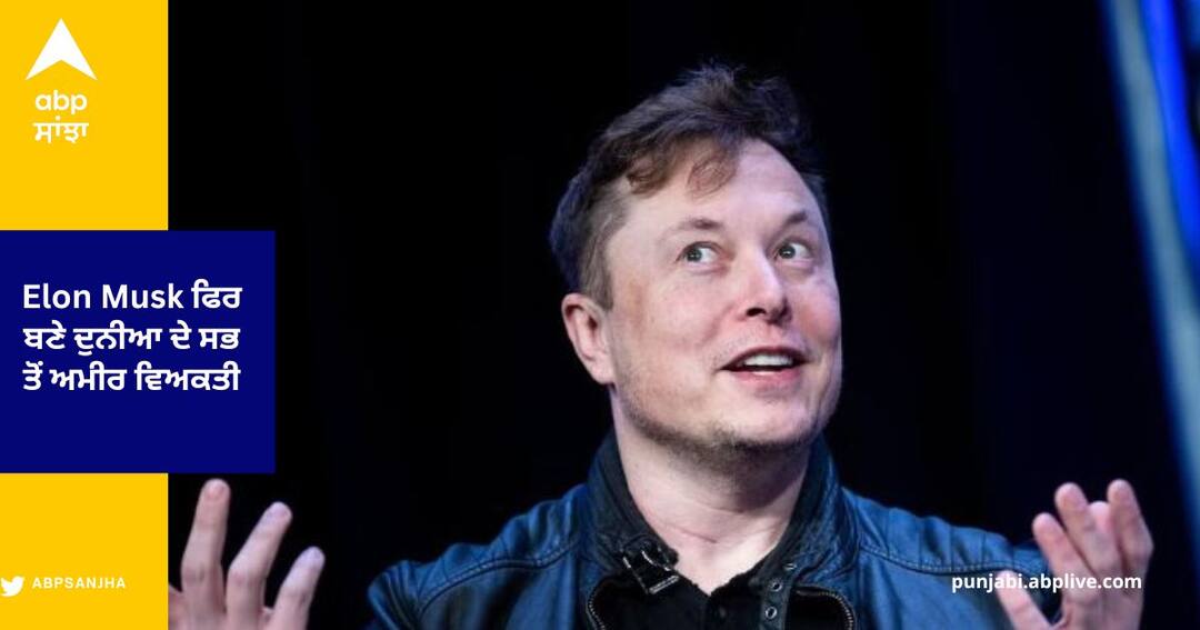 Elon Musk Richest : ਅਰਬਪਤੀ ਐਲੋਨ ਮਸਕ (Elon Musk ) ਇੱਕ ਵਾਰ ਫਿਰ ਦੁਨੀਆ ਦੇ ਸਭ ਤੋਂ ਅਮੀਰ ਵਿਅਕਤੀ ਬਣ ਗਏ ਹਨ। ਬਲੂਮਬਰਗ ਬਿਲੀਨੇਅਰਜ਼ ਇੰਡੈਕਸ ਦੇ ਅਨੁਸਾਰ 187 ਬਿਲੀਅਨ ਡਾਲਰ ਦੀ ਕੁੱਲ ਜਾਇਦਾਦ ਦੇ ਨਾਲ ਮਸਕ ਇੱਕ ਵਾਰ ਫਿਰ ਅਰਬਪਤੀਆਂ ਦੀ ਸੂਚੀ ਵਿੱਚ ਸਿਖਰ ਹਾਸਿਲ ਕੀਤਾ ਹੈ। ਉਨ੍ਹਾਂ ਨੇ ਪਿਛਲੇ ਸਾਲ ਸਭ ਤੋਂ ਅਮੀਰ ਲੋਕਾਂ ਦੀ ਸੂਚੀ ਵਿੱਚ ਟੌਪ 'ਤੇ ਰਹੇ ਫ੍ਰੈਂਚ ਲਗਜ਼ਰੀ ਬ੍ਰਾਂਡ ਲੁਈਸ ਫਾਈਨਾਂਸ ਦੇ ਸੀਈਓ ਬਰਨਾਰਡ ਅਰਨੌਲਟ ਨੂੰ ਪਿੱਛੇ ਛੱਡ ਦਿੱਤਾ ਹੈ।