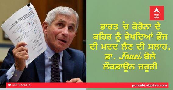 ਡਾ. Fauci ਨੇ ਕਿਹਾ ਕਿ ਜਦੋਂ ਭਾਰਤ 'ਚ ਬਹੁਤ ਸਾਰੇ ਲੋਕ ਸੰਕਰਮਿਤ ਹੋ ਰਹੇ ਹਨ ਤਾਂ ਸਾਰਿਆਂ ਦਾ ਇਲਾਜ ਨਹੀਂ ਹੋ ਪਾ ਰਿਹਾ ਹੈ। ਉਨ੍ਹਾਂ ਕੋਲ ਨਾ ਤਾਂ ਹਸਪਤਾਲਾਂ 'ਚ ਬੈੱਡ ਹਨ ਤੇ ਨਾ ਹੀ ਆਕਸੀਜ਼ਨ। ਇਸ ਅਸਲ 'ਚ ਬਹੁਤ ਹੀ ਪ੍ਰੇਸ਼ਾਨੀ ਵਾਲੀ ਸਥਿਤੀ ਬਣ ਗਈ ਹੈ। ਇਸ ਲਈ ਦੁਨੀਆਂ ਦੇ ਬਾਕੀ ਹਿੱਸਿਆਂ ਤੋਂ ਲੋਕਾਂ ਨੂੰ ਭਾਰਤ ਦੀ ਮਦਦ ਕਰਨੀ ਚਾਹੀਦੀ ਹੈ। ਉੱਥੇ ਹੀ ਨੈਸ਼ਨਲ ਇੰਸਟੀਚਿਊਟ ਆਫ਼ ਐਲਰਜੀ ਐਂਡ ਇਨਫ਼ੈਕਸ਼ਿਅਸ ਡਿਸੀਜ਼ ਦੇ ਡਾਇਰੈਕਟਰ ਨੇ ਕਿਹਾ ਕਿ ਕੁਝ ਅਜਿਹੀਆਂ ਚੀਜ਼ਾਂ ਹਨ ਜੋ ਭਾਰਤ ਤੁਰੰਤ ਕਰ ਸਕਦਾ ਹੈ, ਜਿਵੇਂ ਲੋਕਾਂ ਨੂੰ ਟੀਕਾ ਲਾਉਣਾ।