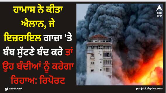 ਰਿਪੋਰਟ ਦੇ ਮੁਤਾਬਕ ਹਮਾਸ ਸਾਰੇ ਬੰਦੀਆਂ ਨੂੰ ਰਿਹਾਅ ਕਰਨ ਲਈ ਤਿਆਰ ਹੈ, ਜੇਕਰ ਇਜ਼ਰਾਇਲ ਗਾਜ਼ਾ 'ਤੇ ਬੰਬ ਸੁੱਟਣੇ ਬੰਦ ਕਰ ਦੇਵੇ।